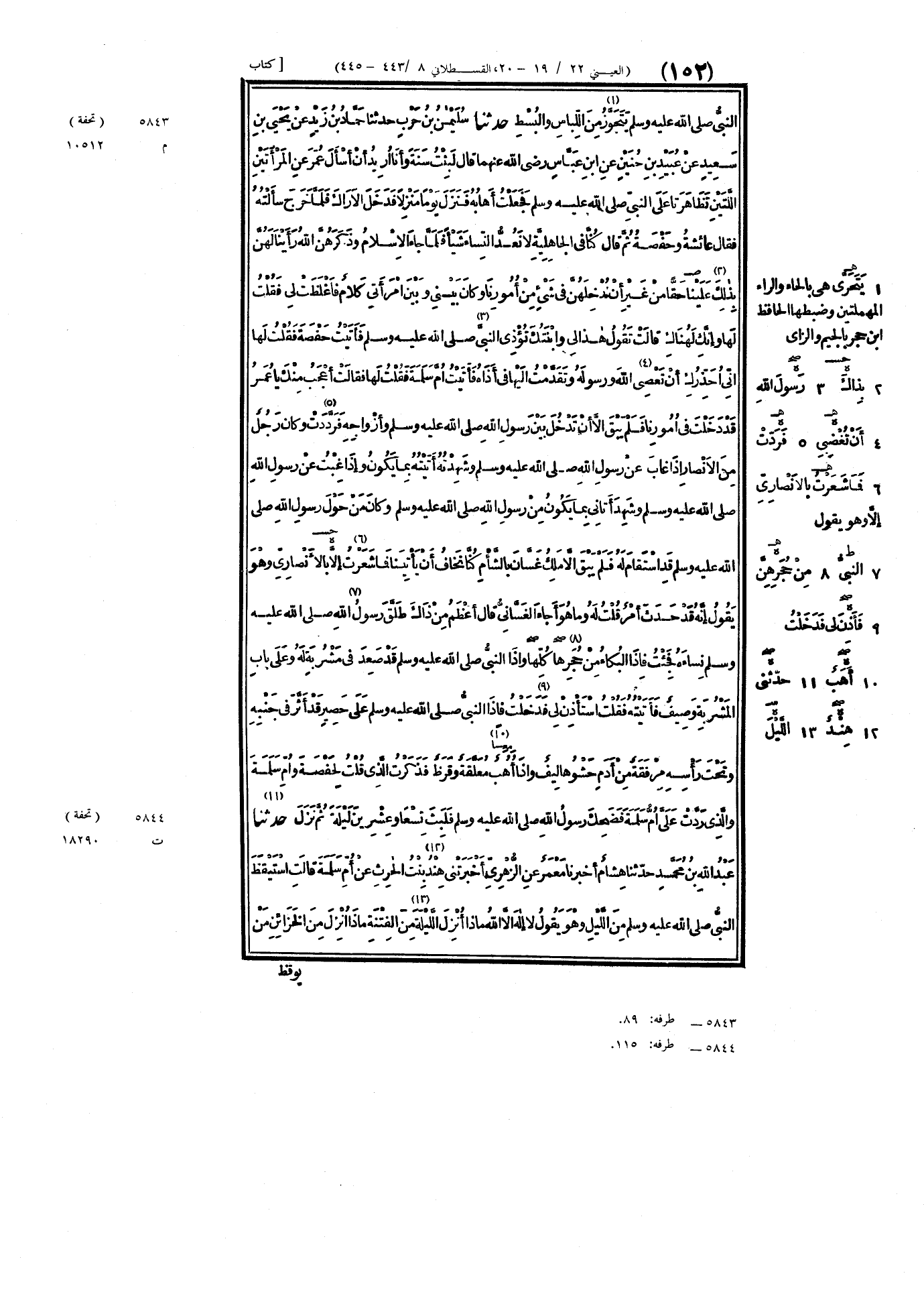 ٥٨٤٤ - حَدَّثَنَا عَبْدُ اللَّهِ بْنُ مُحَمَّدٍ، حَدَّثَنَا هِشَامٌ، أَخْبَرَنَا مَعْمَرٌ، عَنِ الزُّهْرِيِّ، أَخْبَرَتْنِي هِنْدُ بِنْتُ الحَارِثِ، عَنْ أُمِّ سَلَمَةَ، قَالَتْ: اسْتَيْقَظَ النَّبِيُّ صَلَّى اللهُ عَلَيْهِ وَسَلَّمَ مِنَ اللَّيْلِ وَهُوَ يَقُولُ: «لَا إِلَهَ إِلَّا اللَّهُ، مَاذَا أُنْزِلَ اللَّيْلَةَ مِنَ الفِتْنَةِ، مَاذَا أُنْزِلَ مِنَ الخَزَائِنِ، مَنْ ⦗١٥٣⦘ يُوقِظُ صَوَاحِبَ الحُجُرَاتِ، كَمْ مِنْ كَاسِيَةٍ فِي الدُّنْيَا عَارِيَةٍ يَوْمَ القِيَامَةِ» قَالَ الزُّهْرِيُّ: «وَكَانَتْ هِنْدٌ لَهَا أَزْرَارٌ فِي كُمَّيْهَا بَيْنَ أَصَابِعِهَا»