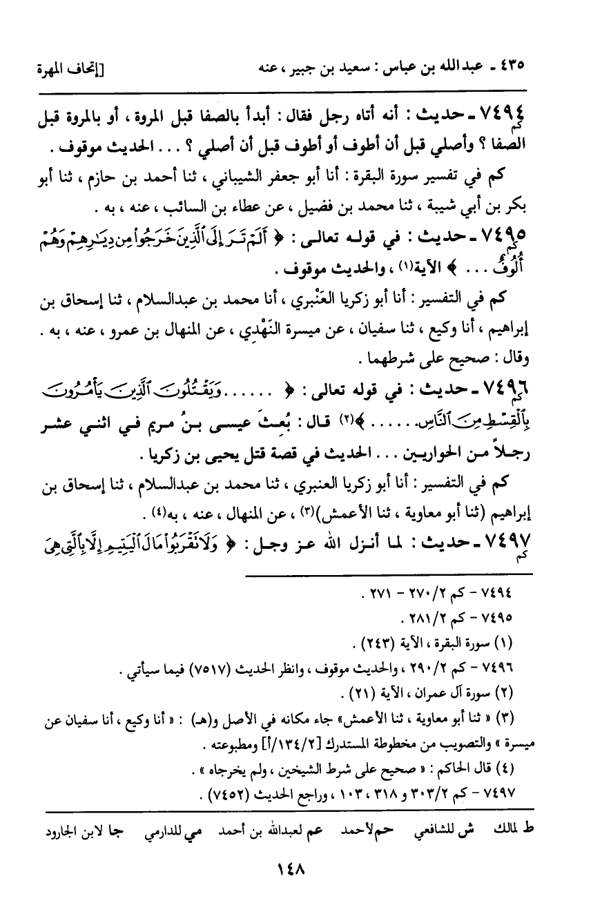 7494 - حَدِيثٌ (كم) : أَنَّهُ أَتَاهُ رَجُلٌ فَقَالَ: أَبْدَأُ بِالصَّفَا قَبْلَ الْمَرْوَةِ، أَوْ بِالْمَرْوَةِ قَبْلَ الصَّفَا؟ وَأُصَلِّي قَبْلَ أَنْ أَطُوفَ أَوْ أَطُوفَ قَبْلَ أَنْ أُصَلِّيَ؟ . . . . الْحَدِيثُ مَوْقُوفٌ. كم فِي تَفْسِيرِ سُورَةِ الْبَقَرَةِ: أنا أَبُو جَعْفَرٍ الشَّيْبَانِيُّ، ثنا أَحْمَدُ بْنُ حَازِمٍ، ثنا أَبُو بَكْرِ بْنُ أَبِي شَبَّةَ، ثنا مُحَمَّدُ بْنُ فُضَيْلٍ، عَنْ عَطَاءِ بْنِ السَّائِبِ، عَنْهُ، بِهِ.