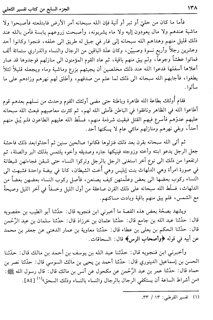 أخبرني ابن فنجويه قال: حدّثنا أبو الطيب بن حفصويه قال: حدّثنا عبد الله بن جامع قال: حدّثنا عثمان بن خرزاذ قال: حدّثنا سلمان بن عبد الرّحمن قال: حدّثنا الحكم بن يعلى بن عطاء قال: حدّثنا معاوية بن عمار الدهني عن جعفر بن محمد عن أبيه في قوله وَأَصْحابَ الرَّسِّ قال: السحاقات.