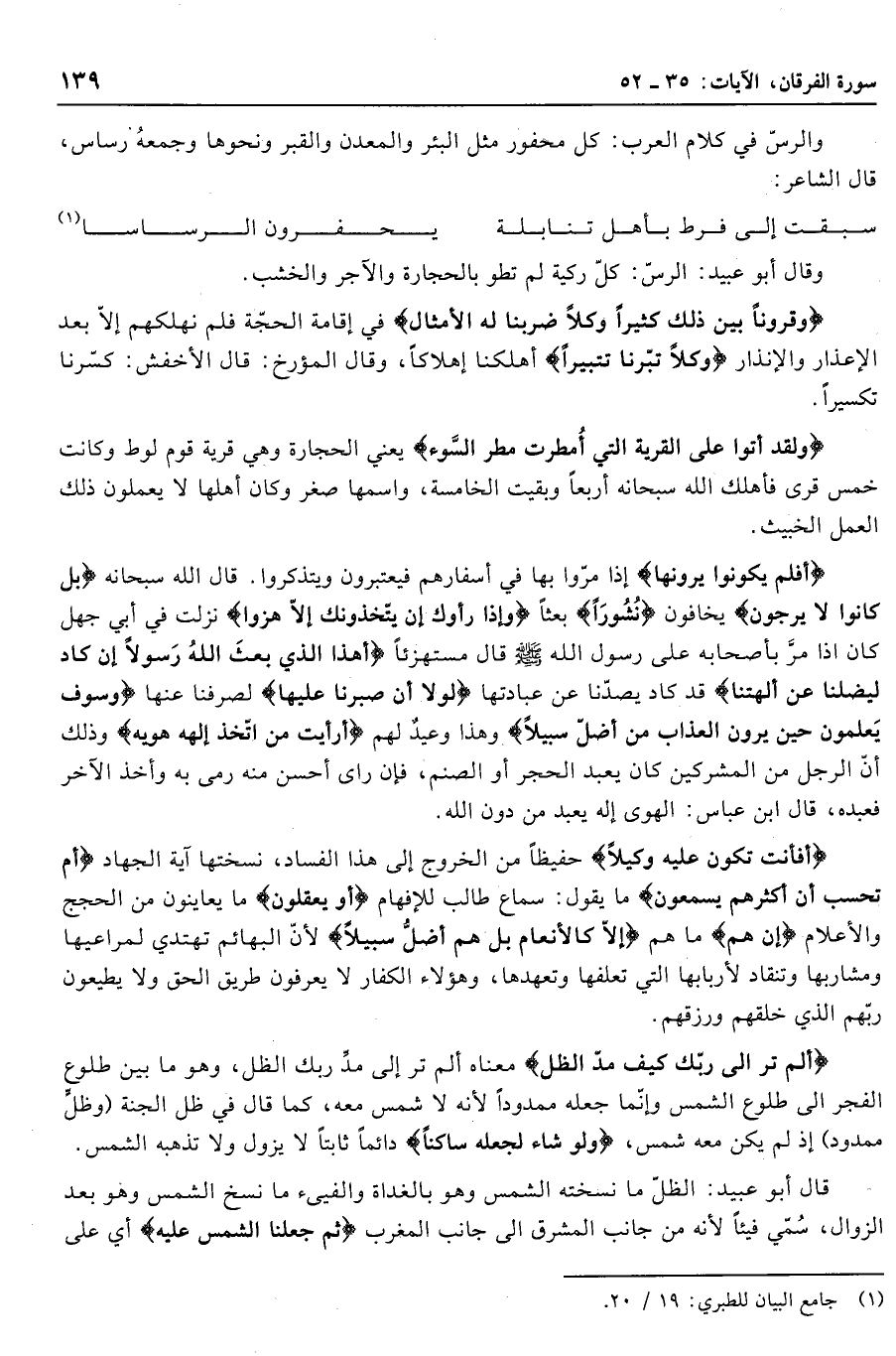 وَقُرُوناً بَيْنَ ذلِكَ كَثِيراً وَكُلًّا ضَرَبْنا لَهُ الْأَمْثالَ في إقامة الحجّة فلم نهلكهم إلّا بعد الإعذار والإنذار وَكُلًّا تَبَّرْنا تَتْبِيراً أهلكنا إهلاكا، وقال المؤرخ: قال الأخفش: كسّرنا تكسيرا.