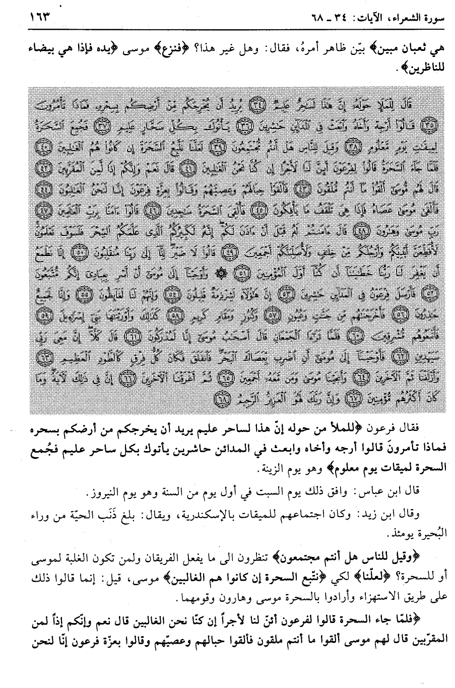 قالَ لِلْمَلَإِ حَوْلَهُ إِنَّ هذا لَساحِرٌ عَلِيمٌ (34) يُرِيدُ أَنْ يُخْرِجَكُمْ مِنْ أَرْضِكُمْ بِسِحْرِهِ فَماذا تَأْمُرُونَ (35) قالُوا أَرْجِهْ وَأَخاهُ وَابْعَثْ فِي الْمَدائِنِ حاشِرِينَ (36) يَأْتُوكَ بِكُلِّ سَحَّارٍ عَلِيمٍ (37) فَجُمِعَ السَّحَرَةُ لِمِيقاتِ يَوْمٍ مَعْلُومٍ (38)