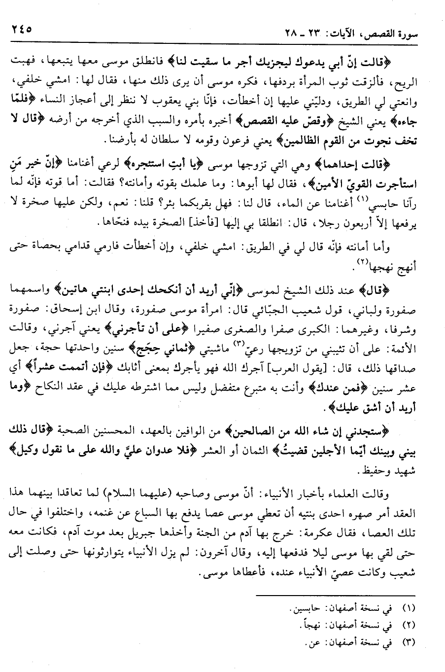 قالَ عند ذلك الشيخ لموسى إِنِّي أُرِيدُ أَنْ أُنْكِحَكَ إِحْدَى ابْنَتَيَّ هاتَيْنِ واسمهما صفورة ولباني، قول شعيب الجبّائي قال: امرأة موسى صفورة، وقال ابن إسحاق: صفورة وشرفا، وغيرهما: الكبرى صفرا والصغرى صفيرا عَلى أَنْ تَأْجُرَنِي يعني آجرني، وقالت الأئمة: على أن تثيبني من تزويجها رعيّ «3» ماشيتي ثَمانِيَ حِجَجٍ سنين واحدتها حجة، جعل صداقها ذلك، قال: [يقول العرب] آجرك الله فهو يأجرك بمعنى أثابك فَإِنْ أَتْمَمْتَ عَشْراً أي عشر سنين فَمِنْ عِنْدِكَ وأنت به متبرع متفضل وليس مما اشترطه عليك في عقد النكاح وَما أُرِيدُ أَنْ أَشُقَّ عَلَيْكَ سَتَجِدُنِي إِنْ شاءَ اللَّهُ مِنَ الصَّالِحِينَ من الوافين بالعهد، المحسنين الصحبة قالَ ذلِكَ بَيْنِي وَبَيْنَكَ أَيَّمَا الْأَجَلَيْنِ قَضَيْتُ الثمان أو العشر فَلا عُدْوانَ عَلَيَّ وَاللَّهُ عَلى ما نَقُولُ وَكِيلٌ شهيد وحفيظ.