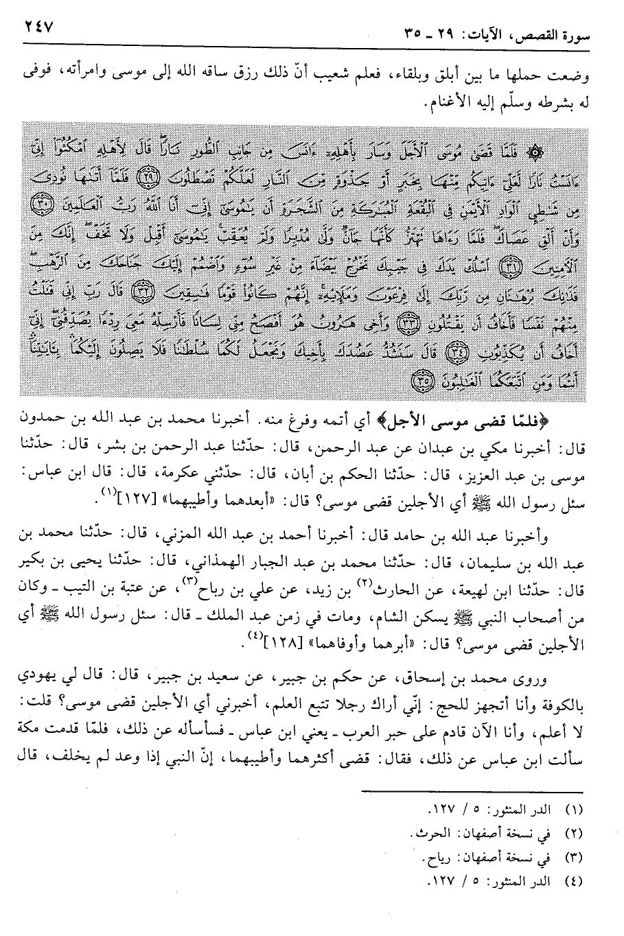سئل رسول الله صلى الله عليه وسلّم أي الأجلين قضى موسى؟ قال: «أبعدهما وأطيبهما» [127] «1» .