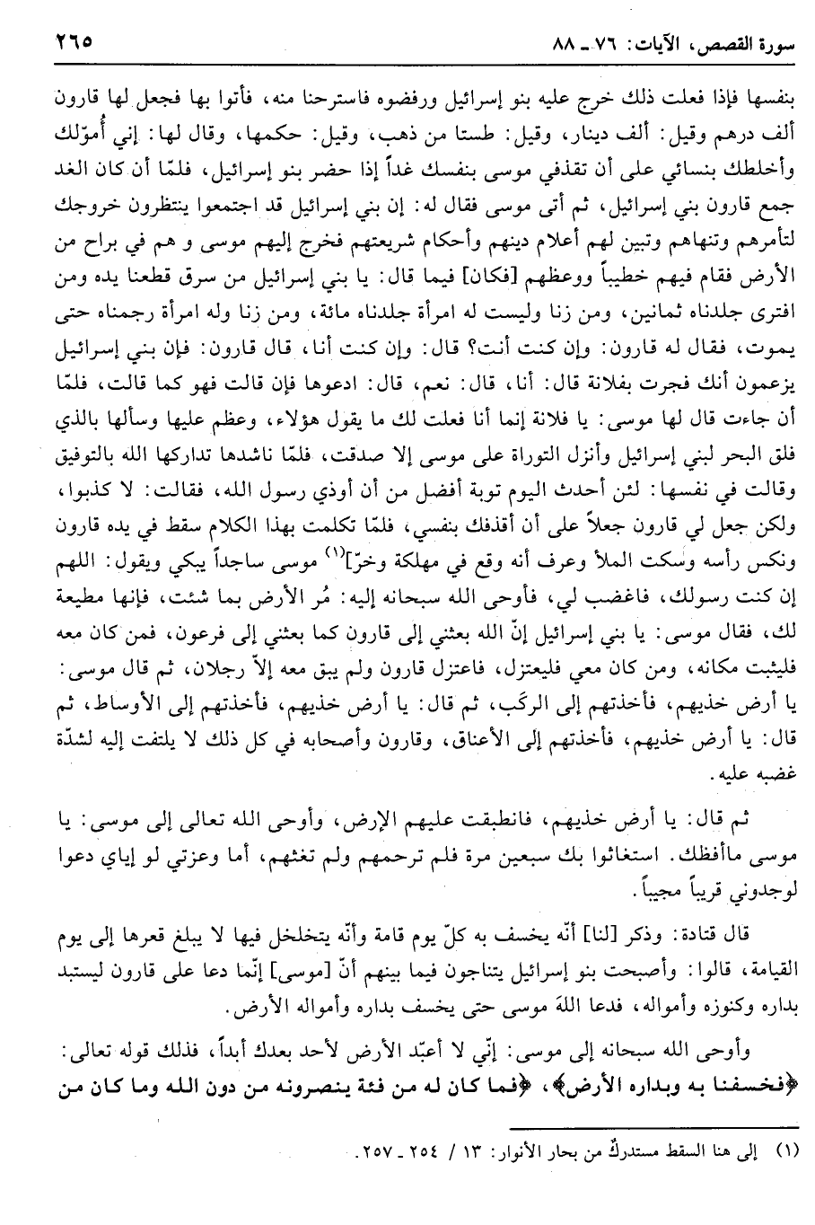 فَخَسَفْنا بِهِ وَبِدارِهِ الْأَرْضَ، فَما كانَ لَهُ مِنْ فِئَةٍ يَنْصُرُونَهُ مِنْ دُونِ اللَّهِ وَما كانَ مِنَ المُنْتَصِرِينَ