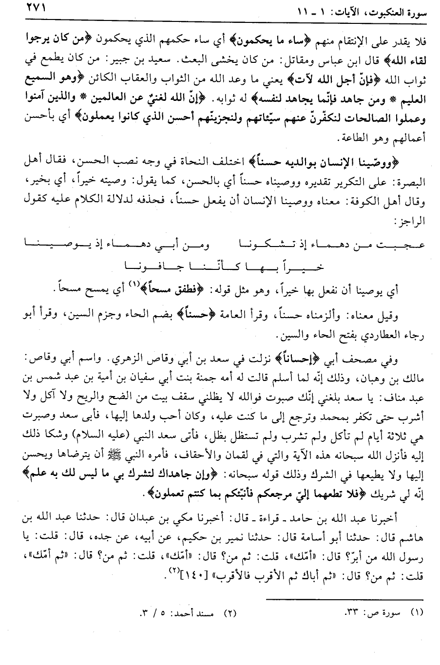 وفي مصحف أبي إحسانا نزلت في سعد بن أبي وقاص الزهري. واسم أبي وقاص: