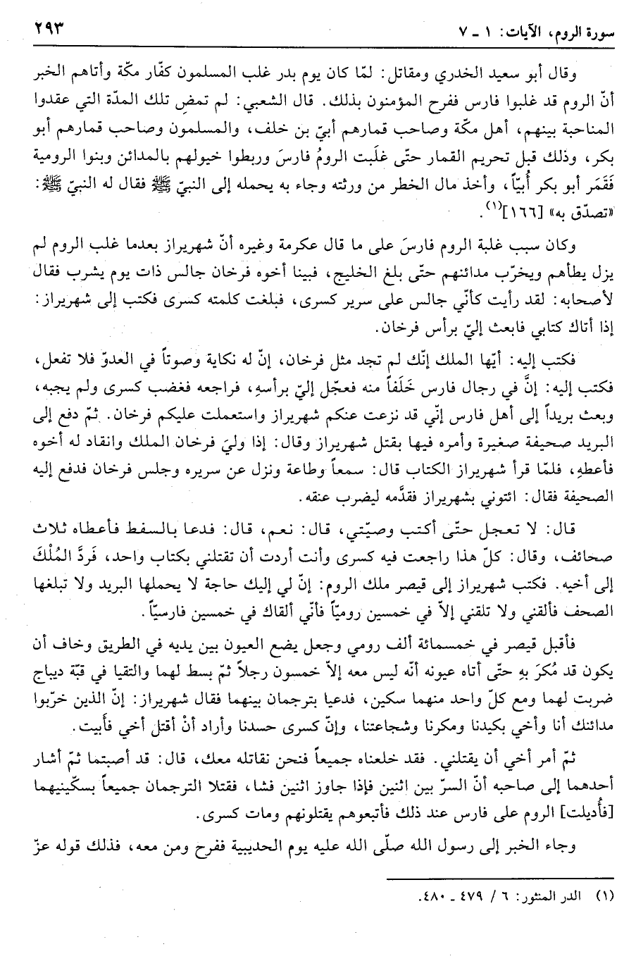 وقال أبو سعيد الخدري ومقاتل: لمّا كان يوم بدر غلب المسلمون كفّار مكّة وأتاهم الخبر أنّ الروم قد غلبوا فارس ففرح المؤمنون بذلك.