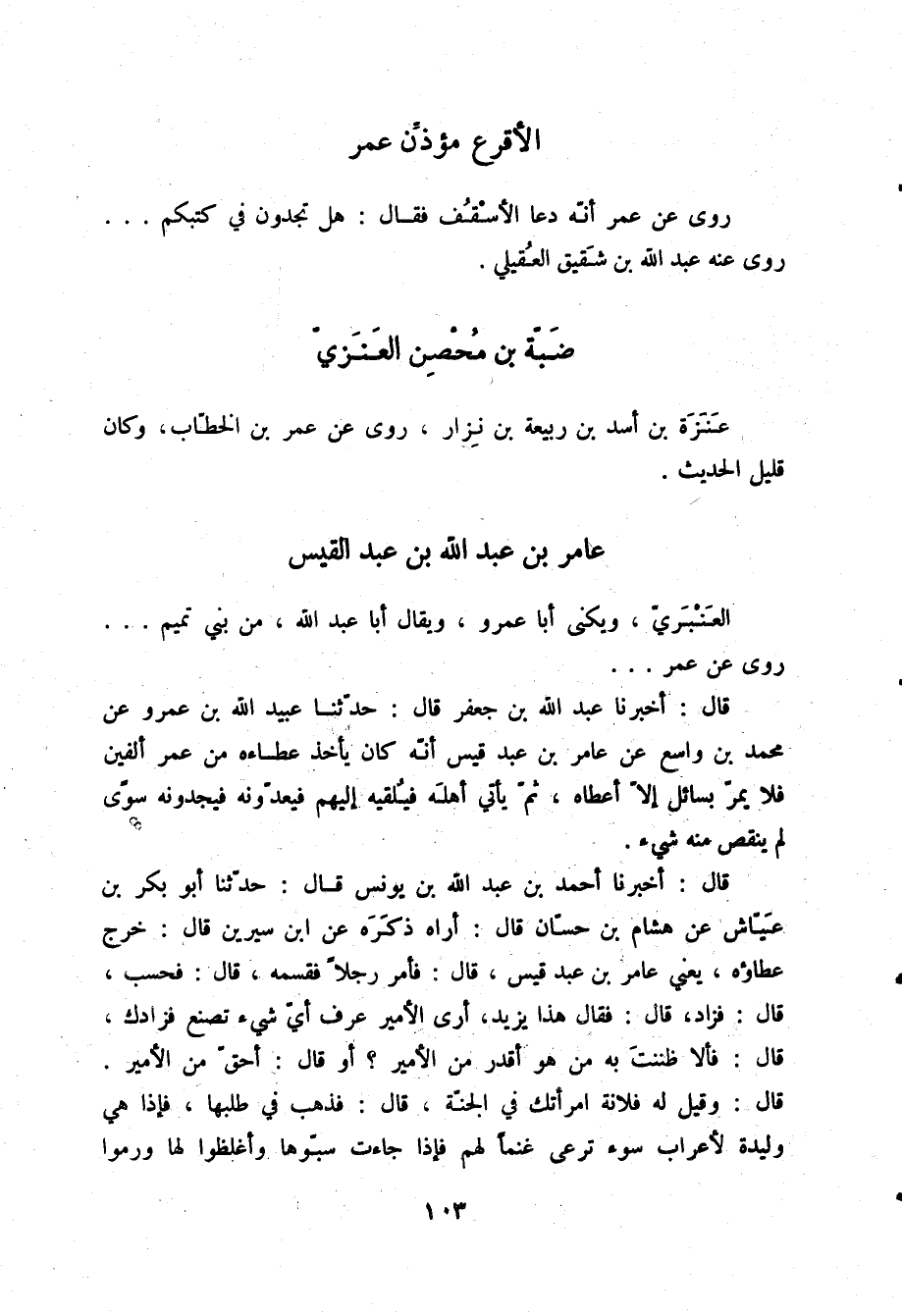 §عَامِرُ بْنُ عَبْدِ اللَّهِ بْنِ عَبْدِ الْقَيْسِ الْعَنْبَرِيُّ وَيُكْنَى أَبَا عَمْرٍو، وَيُقَالُ أَبَا عَبْدِ اللَّهِ، مِنْ بَنِي تَمِيمٍ، رَوَى عَنْ عُمَرَ
