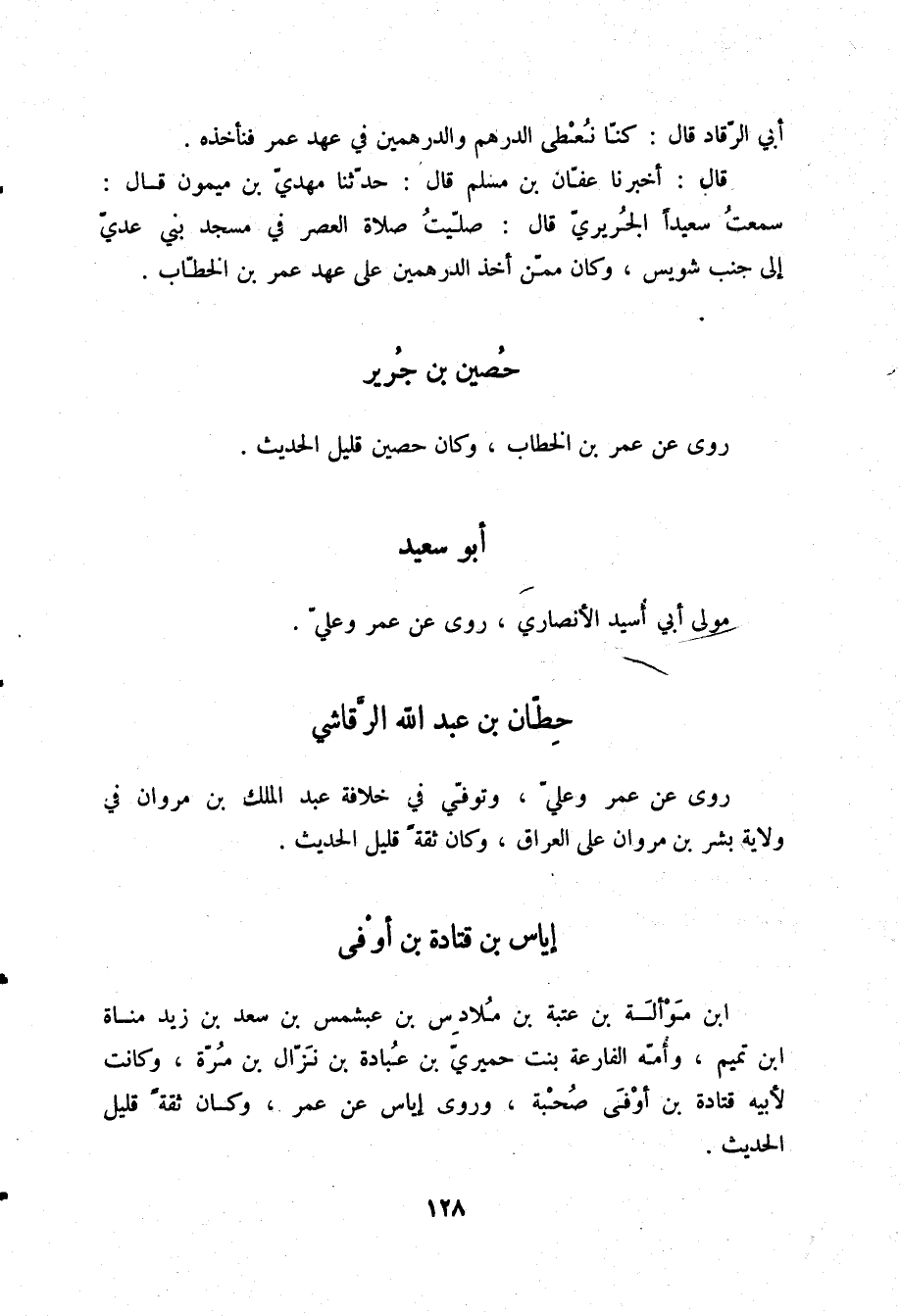 §حُصَيْنُ بْنُ جَرِيرٍ رَوَى عَنْ عُمَرَ بْنِ الْخَطَّابِ، وَكَانَ، حُصَيْنٌ قَلِيلَ الْحَدِيثِ