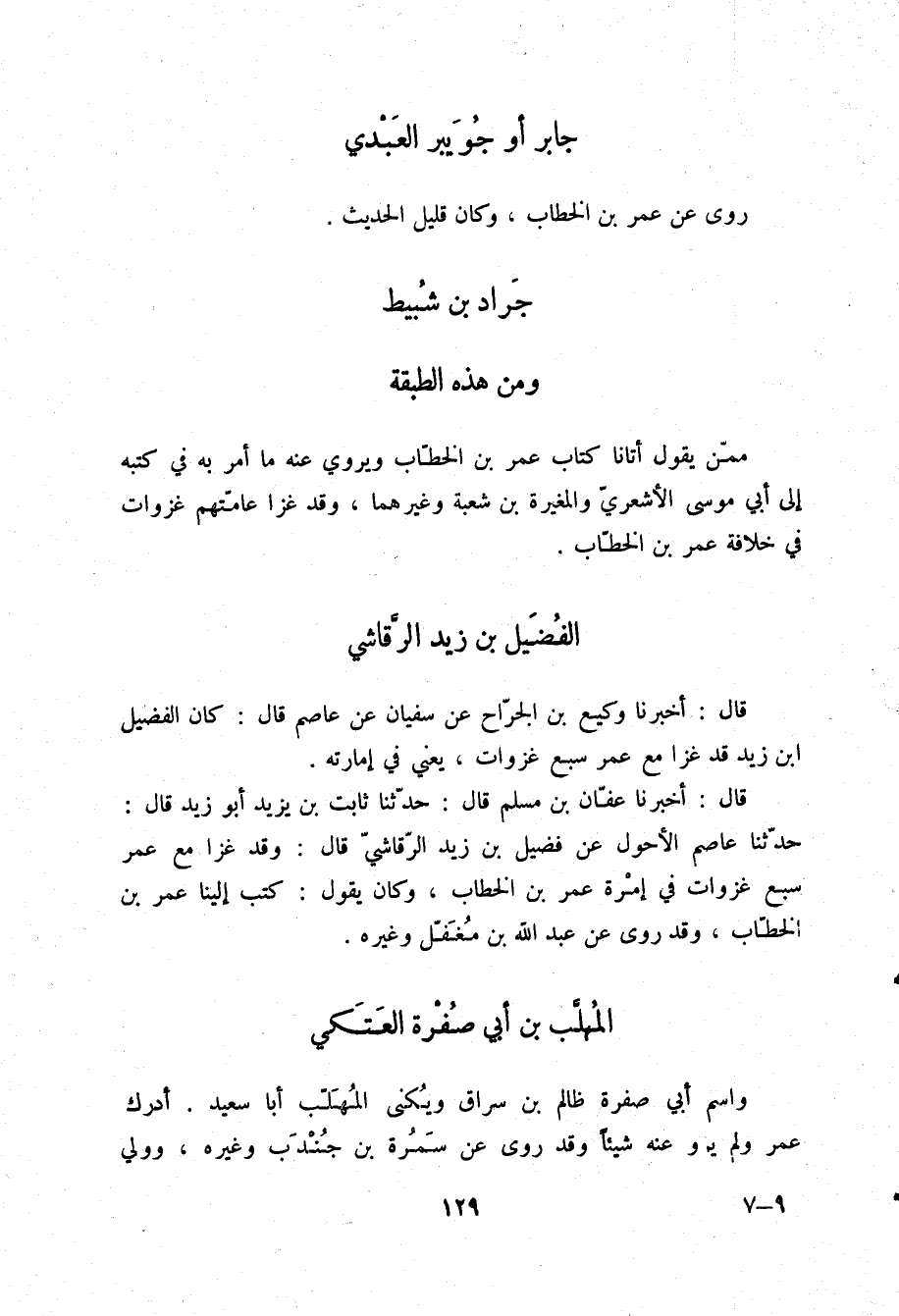 §وَمِنْ هَذِهِ الطَّبَقَةِ مِمَّنْ يَقُولُ أَتَانَا كِتَابُ عُمَرَ بْنِ الْخَطَّابِ، وَيَرْوِي عَنْهُ مَا أَمَرَ بِهِ فِي كُتُبِهِ إِلَى أَبِي مُوسَى الْأَشْعَرِيِّ، وَالْمُغِيرَةِ بْنِ شُعْبَةَ وَغَيْرِهِمَا، وَقَدْ غَزَا عَامَّتُهُمْ غَزَوَاتٍ فِي خِلَافَةِ عُمَرَ بْنِ الْخَطَّابِ