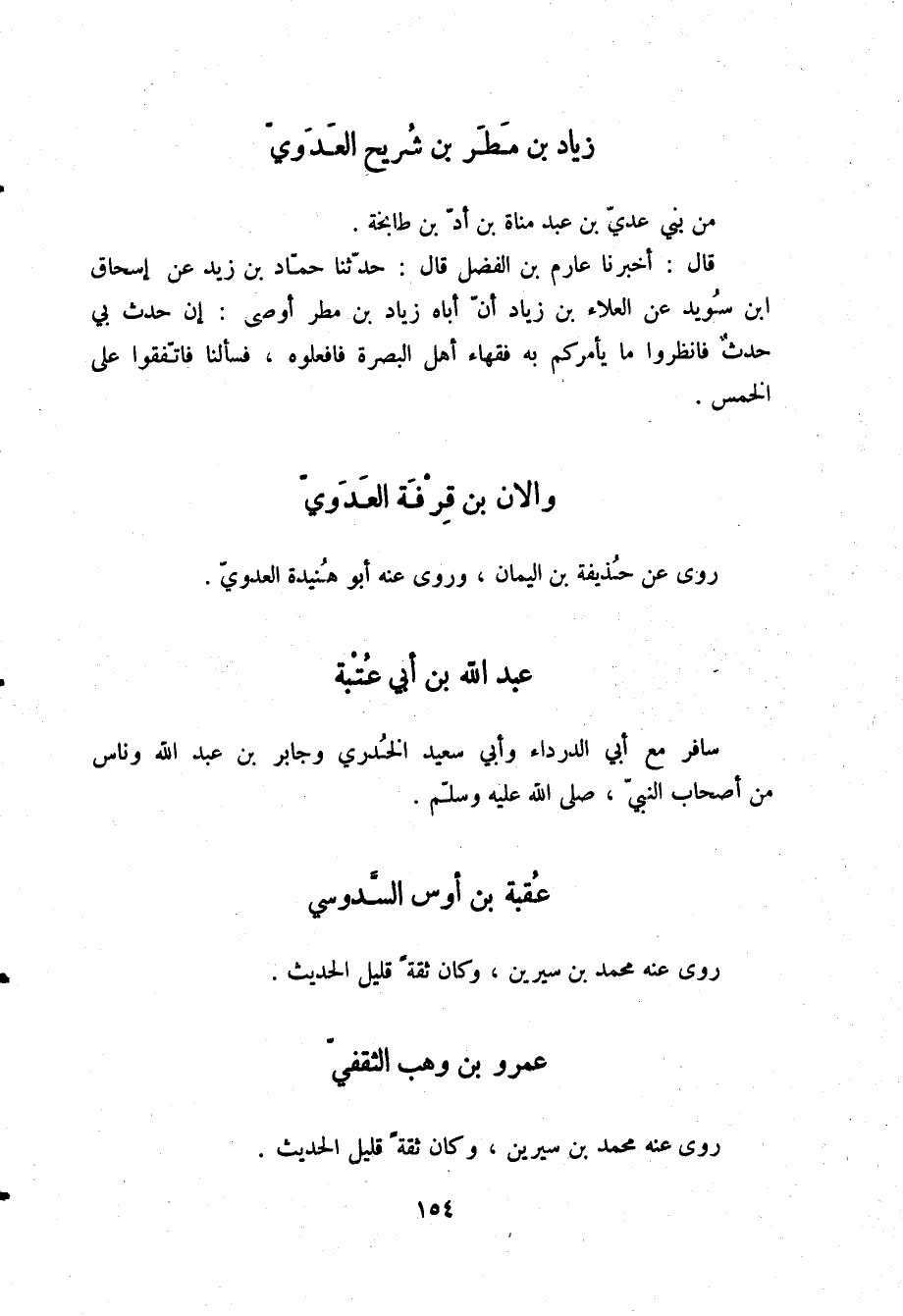قَالَ: أَخْبَرَنَا عَارِمُ بْنُ الْفَضْلِ، قَالَ: حَدَّثَنَا حَمَّادُ بْنُ زَيْدٍ، عَنْ إِسْحَاقَ بْنِ سُوَيْدٍ، عَنِ الْعَلَاءِ بْنِ زِيَادٍ، أَنَّ أَبَاهُ زِيَادَ بْنَ مَطَرٍ أَوْصَى: «§إِنْ حَدَثَ بِي حَدَثٌ فَانْظُرُوا، مَا يَأْمُرُكُمْ بِهِ فُقَهَاءُ أَهْلِ الْبَصْرَةِ، فَافْعَلُوهُ» فَسَأَلْنَا، فَاتَّفَقُوا عَلَى الْخُمُسِ