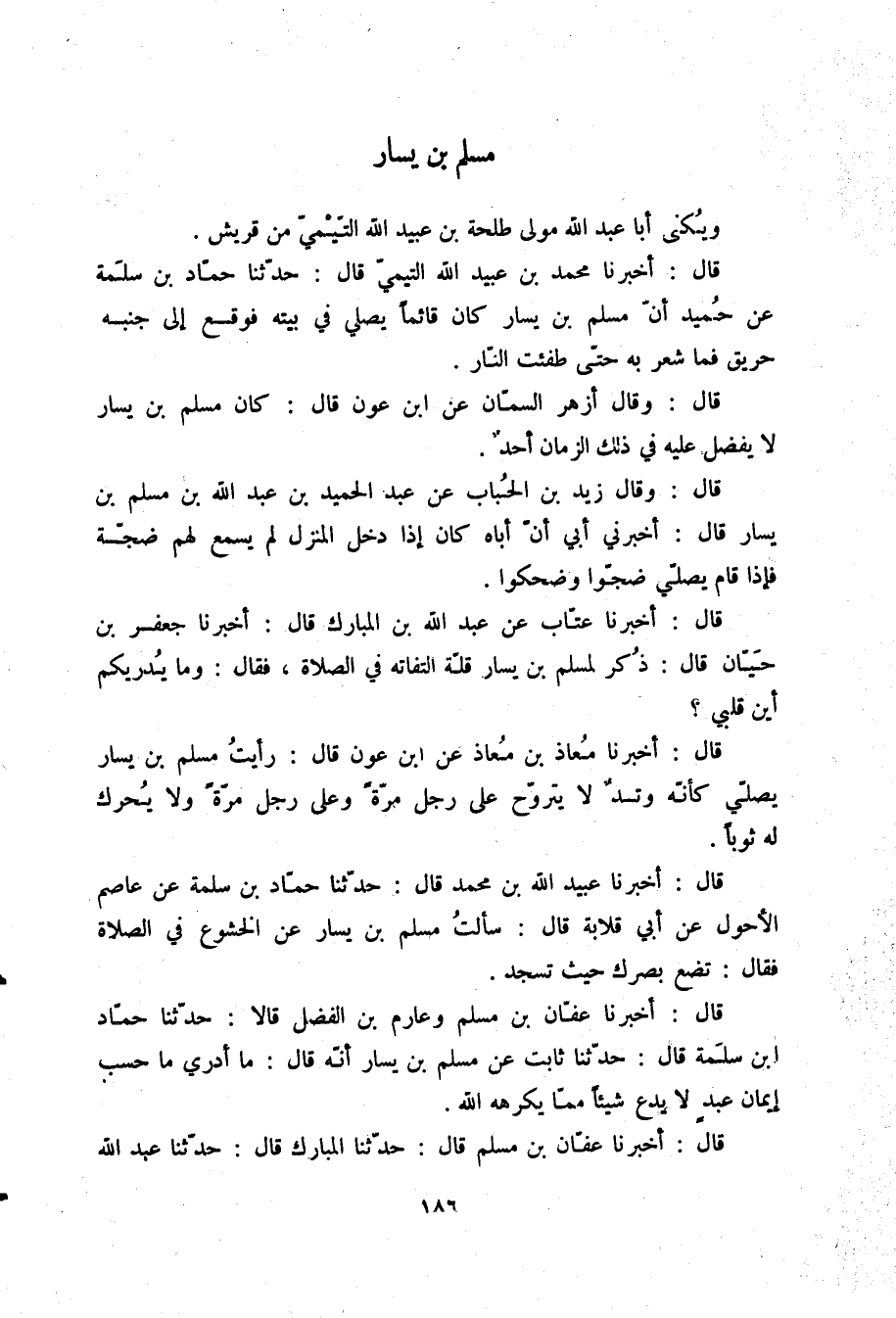 §مُسْلِمُ بْنُ يَسَارٍ وَيُكْنَى أَبَا عَبْدِ اللَّهِ، مَوْلَى طَلْحَةَ بْنِ عُبَيْدِ اللَّهِ التَّيْمِيِّ، مِنْ قُرَيْشٍ