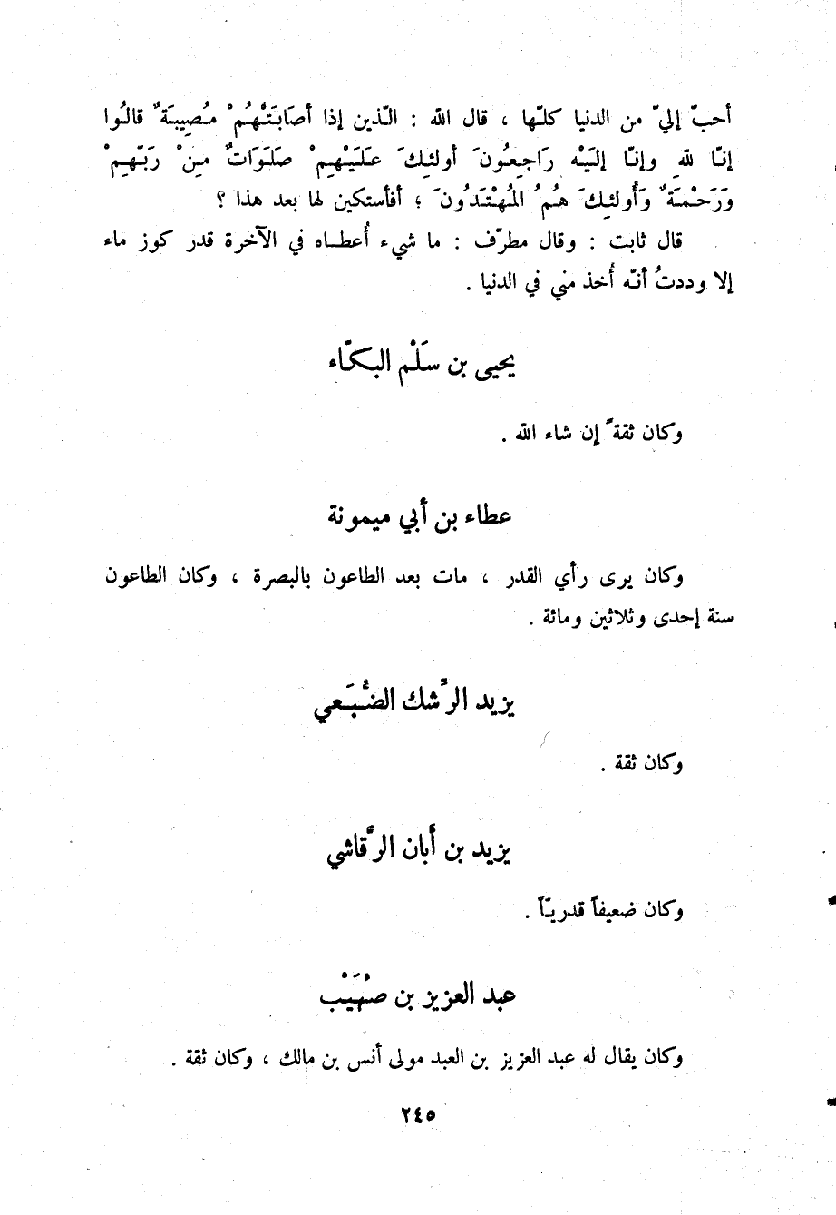 §يَزِيدُ الرِّشْكِ الضُّبَعِيُّ وَكَانَ ثِقَةً يَزِيدُ بْنُ أَبَانَ الرَّقَاشِيُّ وَكَانَ ضَعِيفًا، قَدَرِيًّا