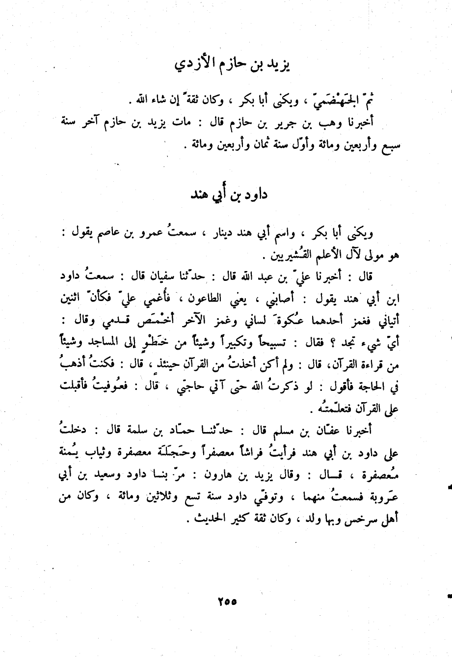 أَخْبَرَنَا وَهْبُ بْنُ جَرِيرِ بْنِ حَازِمٍ، قَالَ: «§مَاتَ يَزِيدُ بْنُ حَازِمٍ آخِرَ سَنَةِ سَبْعٍ وَأَرْبَعِينَ وَمِائَةٍ، وَأَوَّلَ سَنَةِ ثَمَانٍ وَأَرْبَعِينَ وَمِائَةٍ»
