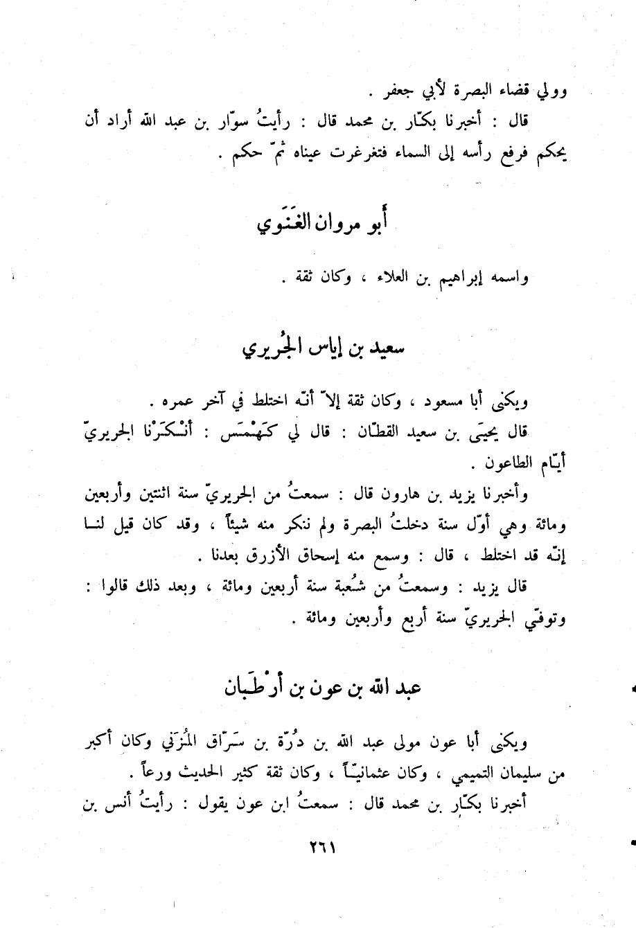 §سَعِيدُ بْنُ إِيَاسَ الْجُرَيْرِيُّ وَيُكْنَى أَبَا مَسْعُودٍ، وَكَانَ ثِقَةً، إِلَّا أَنَّهُ اخْتَلَطَ فِي آخِرِ عُمْرِهِ