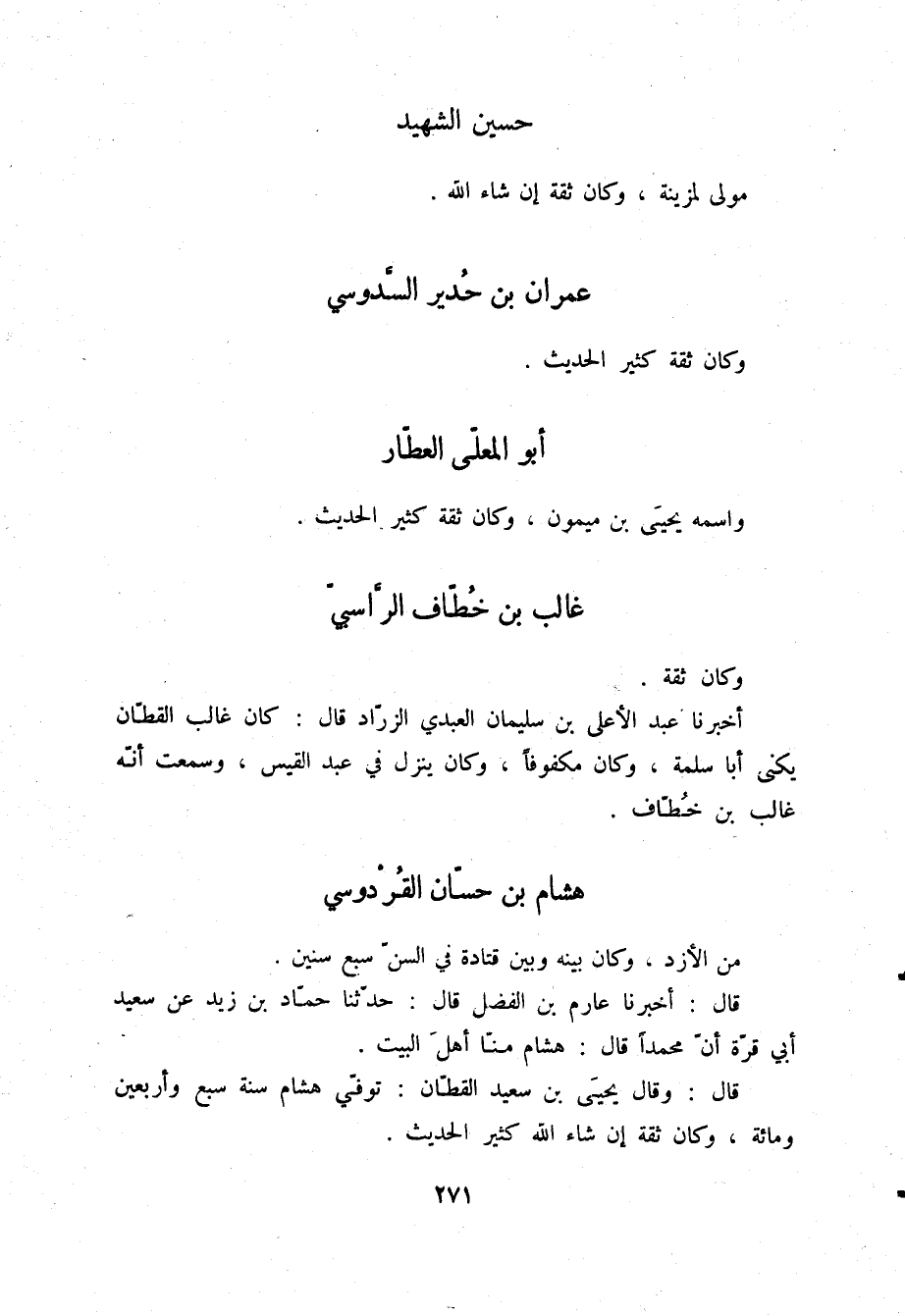 §عِمْرَانُ بْنُ حُدَيْرٍ السَّدُوسِيُّ وَكَانَ ثِقَةٍ، كَثِيرَ الْحَدِيثِ