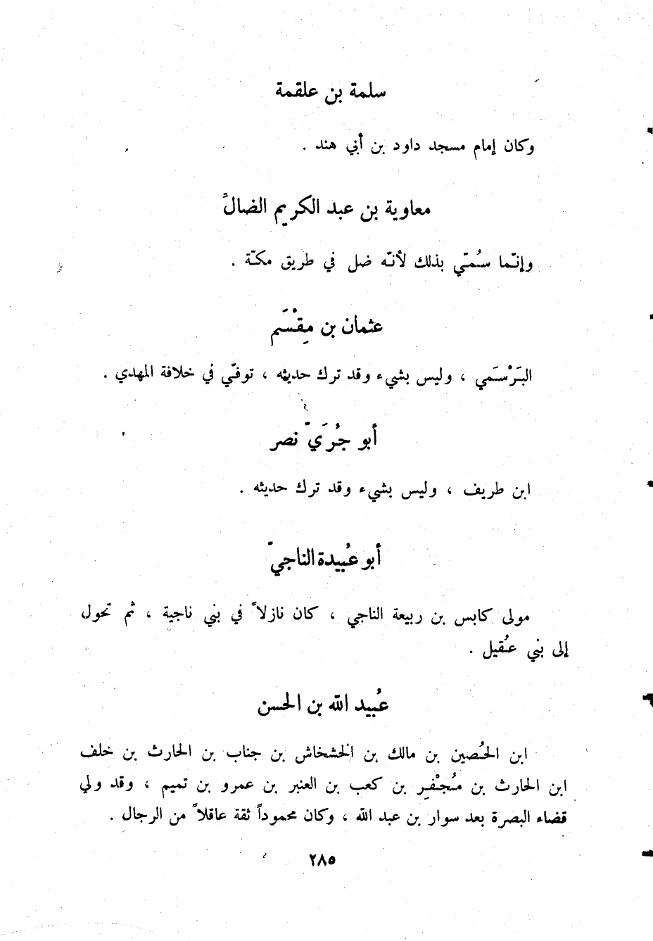§مُعَاوِيَةُ بْنُ عَبْدِ الْكَرِيمِ الضَّالُّ وَإِنَّمَا سُمِّيَ بِذَلِكُ؛ لِأَنَّهُ ضَلَّ فِي طَرِيقِ مَكَّةَ