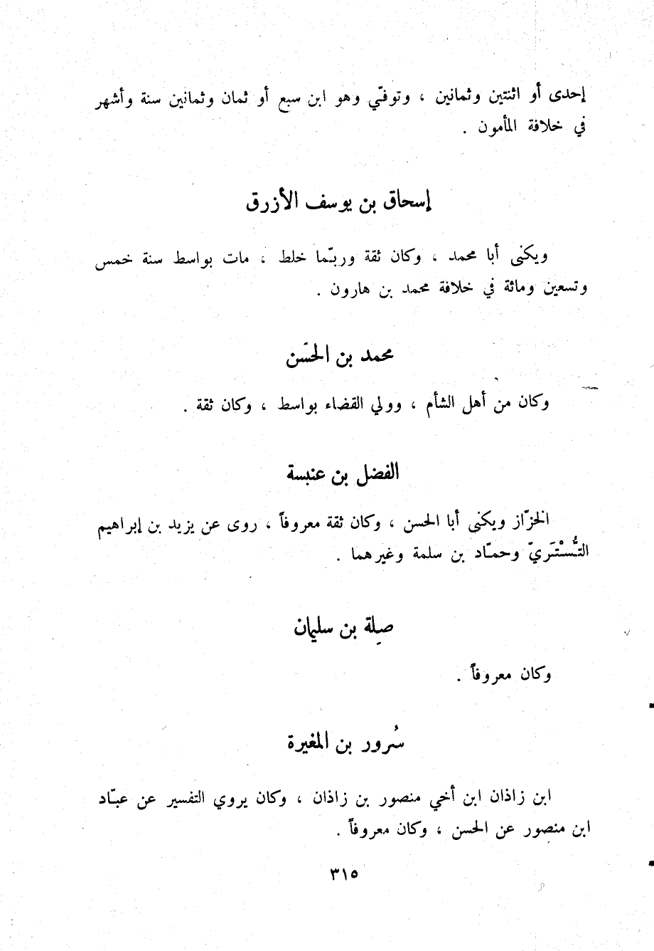 §إِسْحَاقُ بْنُ يُوسُفَ الْأَزْرَقُ وَيُكْنَى أَبَا مُحَمَّدٍ، وَكَانَ ثِقَةً، وَرُبَّمَا خَلَطَ، مَاتَ بِوَاسِطَ سَنَةَ خَمْسٍ وَتِسْعِينَ وَمِائَةٍ فِي خِلَافَةِ مُحَمَّدِ بْنِ هَارُونَ