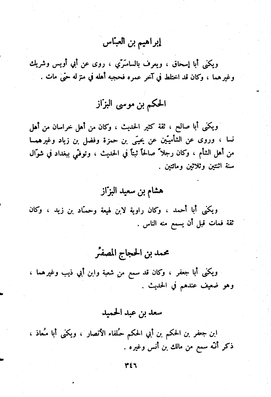 §هِشَامُ بْنُ سَعِيدٍ الْبَزَّازُ وَيُكْنَى أَبَا أَحْمَدَ، وَكَانَ رَاوِيَةً لِابْنِ لَهِيعَةَ، وَحَمَّادِ بْنِ زَيْدٍ، وَكَانَ ثِقَةً، فَمَاتَ قَبْلَ أَنْ يَسْمَعَ مِنْهُ النَّاسُ
