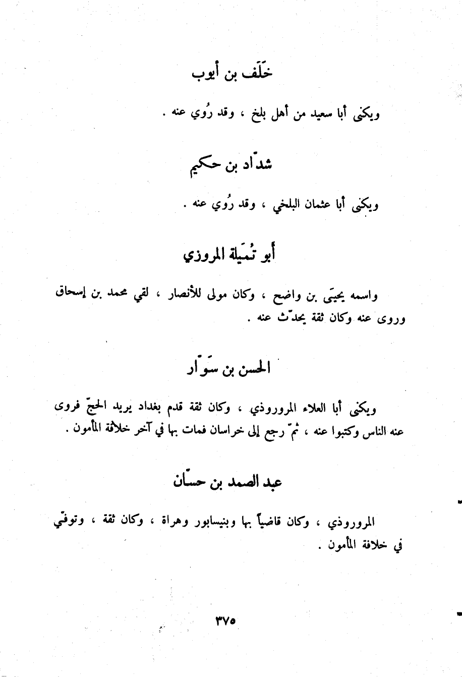 §عَبْدُ الصَّمَدِ بْنُ حَسَّانَ الْمَرْوَرُوذِيُّ وَكَانَ قَاضِيًا بِهَا وَبِنَيْسَابُورَ وَهُرَاةَ، وَكَانَ ثِقَةً، وَتُوُفِّيَ فِي خِلَافَةِ الْمَأْمُونِ