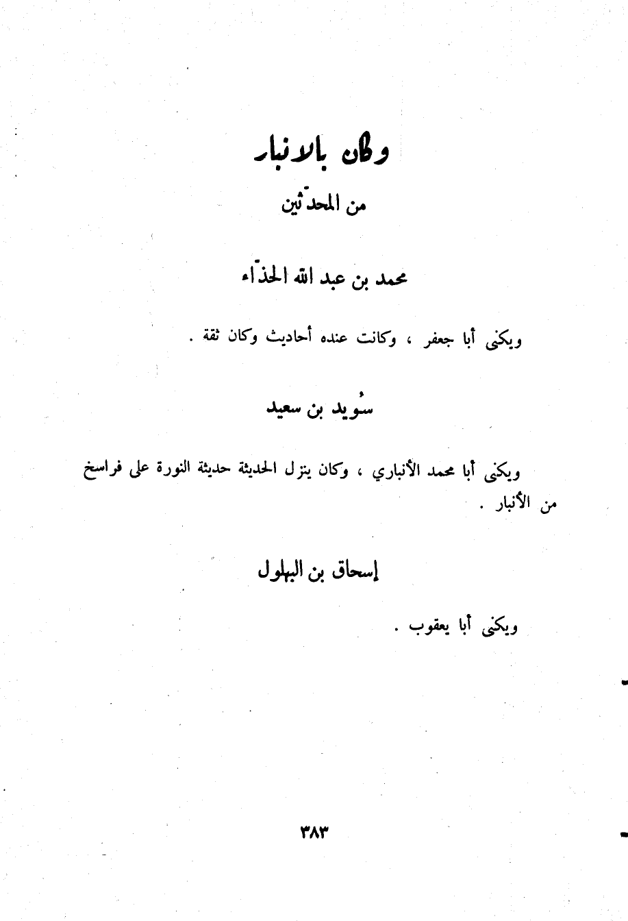§وَكَانَ بِالْأَنْبَارِ مِنَ الْمُحَدِّثِينَ