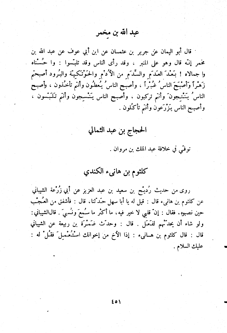 قَالَ: وَحَدَّثَ ضَمْرَةُ بْنُ رَبِيعَةَ عَنِ الشَّيْبَانِيِّ قَالَ: قَالَ كُلْثُومُ بْنُ هَانِئٍ: " §إِذَا الْأَخُ مِنْ إِخْوَانِكَ اسْتُعْمِلَ فَقُلْ لَهُ: عَلَيْكَ السَّلَامُ "