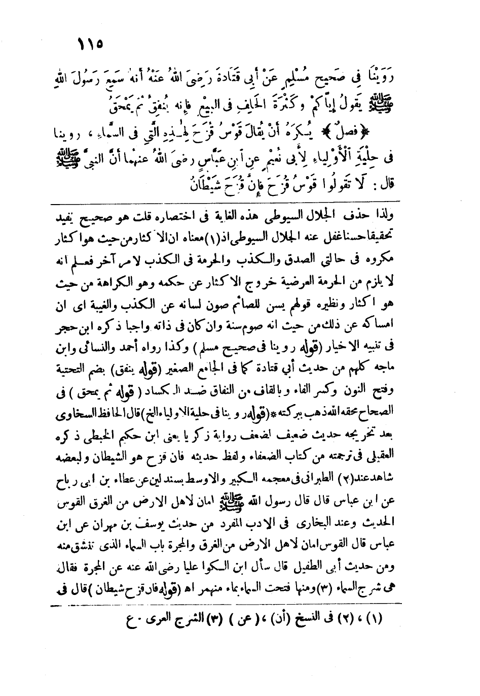 قوله: (يكره إكثار الحلف في البيع ونحوه) قال تعالى: {وَلَا تَجْعَلُوا اللهَ عُرْضَةً لِأَيْمَانِكُمْ} أي لا تكثروا منها لتصدقوا ولخبر إنما الحلف حنث أو ندم رواه ابن حبان في صحيحه. قوله: (وإن كان صادقاً) إن قيل العبارة صريحة في كراهة الإكثار من الإيمان في حال الكذب أيضاً مع أنها حرام حينئذٍ
