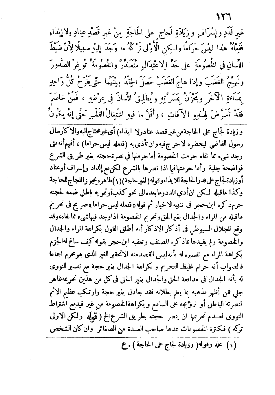 في صلاته وخاطره معلَّق بالمحاجة والخصومة، فلا يبقى حاله على الاستقامة. والخصومةُ مبدأُ الشرِّ، وكذا الجدالُ والمراء، فينبغي أن لا يفتحَ عليه باب الخصومة إلا لضرورة لا بد منها، وعند ذلك يحفظ لسانه وقلبه عن آفات الخصومة.