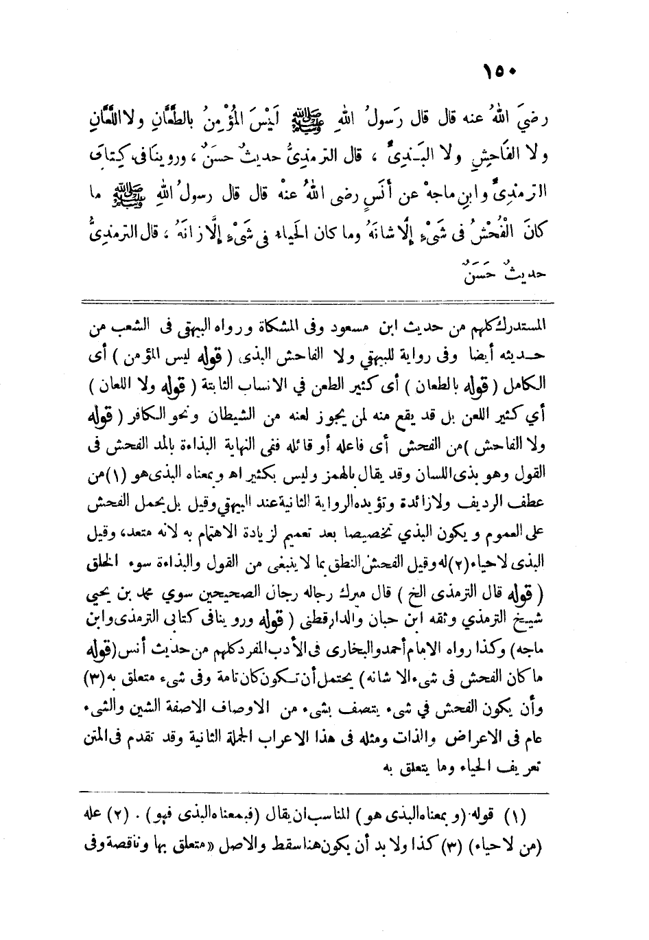 رضي الله عنه قال: قال رسول الله -صلى الله عليه وسلم-: "لَيْسَ المُؤْمِنُ بالطعَّانِ وَلاَ اللَّعَّانِ وَلا الفَاحِشِ وَلاَ البَذِيءِ" قال الترمذي: حديث حسن.