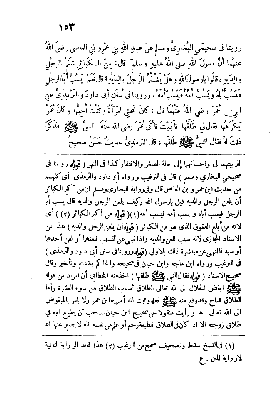 وروينا في "صحيحي البخاري ومسلم" عن عبد الله بن عمرو بن العاص رضي الله عنهما أن رسول الله -صلى الله عليه وسلم- قال: "مِنَ الكَبَائِرِ شَتْمُ الرّجُلِ وَالِدَيْهِ، قالوا: يا رسول الله، وهل يشتم الرجل والديه؟ قال: نَعَمْ، يَسُبُّ أبَا الرّجُلِ فَيَسُبُّ أباهُ، ويَسُبُّ أُمَّهُ فَيَسُبُّ أمَّهُ".