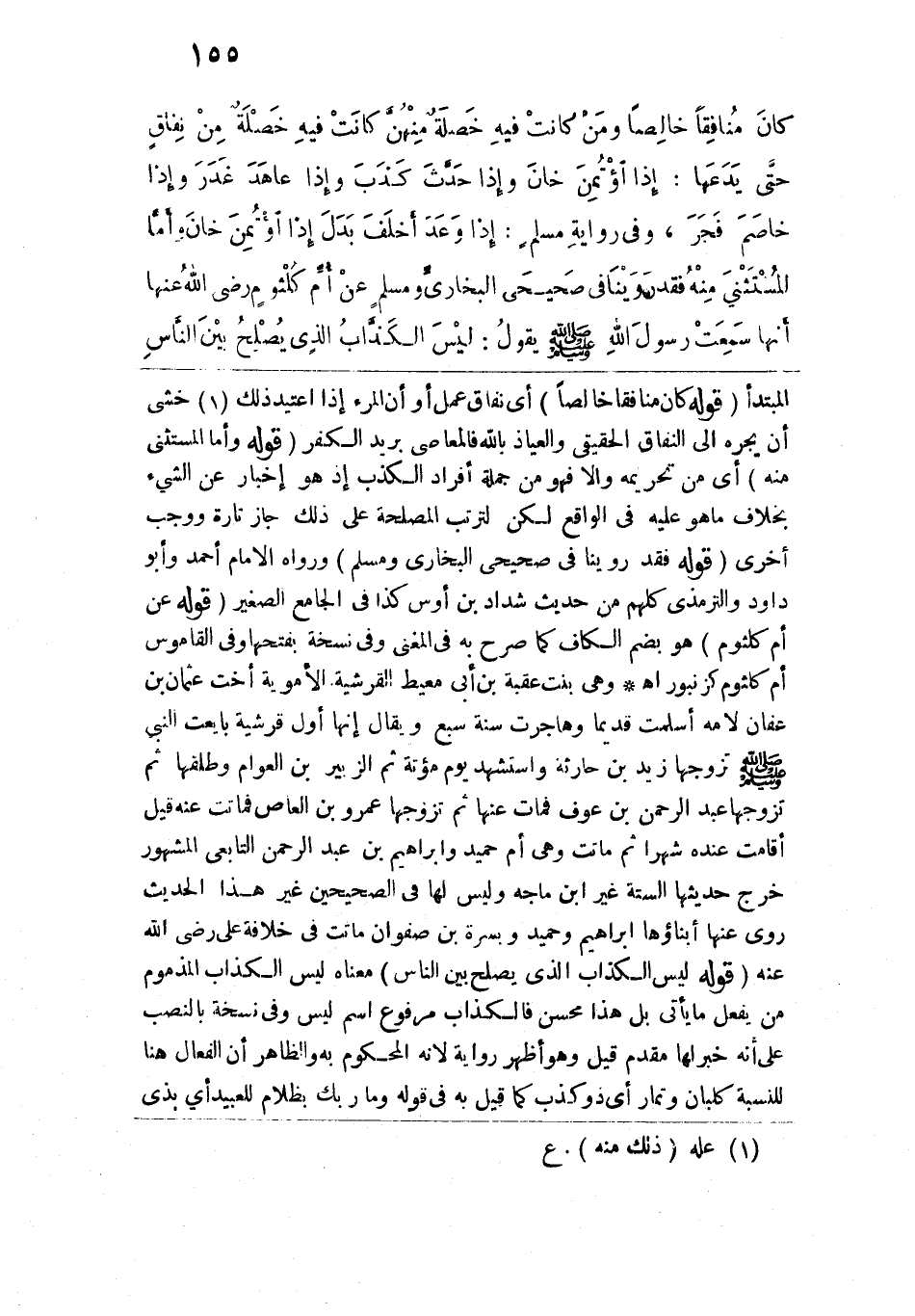 من حديث شداد بن أوس كذا في الجامع الصغير. قوله: (عن أم كلثوم) هو بضم الكاف كما صرح به في المعنى وفي نسخة بفتحها وفي القاموس أم كلثوم كزنبور اهـ. وهي بنت عقبة بن أبي معيط القرشية الأموية أخت عثمان بن عفان لأمه أسلمت قديماً وهاجرت سنة سبع ويقال إنها أول قرشية بايعت النبي -صلى الله عليه وسلم- تزوجها زيد بن حارثة واستشهد يوم مؤتة ثم الزبير بن العوام وطلقها ثم تزوجها عبد الرحمن بن عوف فمات عنها ثم تزوجها عمرو بن العاص فماتت عنه قيل أقامت عنده شهراً ثم ماتت وهي أم حميد وإبراهيم بن عبد الرحمن التابعي المشهور خرج حديثها الستة غير ابن ماجه وليس لها في الصحيحين غير هذا الحديث روى عنها أبناؤها إبراهيم وحميد وبسرة بن صفوان ماتت في خلافة علي رضي الله عنه. قوله: (ليس الكذاب الذي يصلح بين النّاس) معناه ليس الكذاب المذموم من يفعل ما يأتي بل وهذا محسن فالكذاب مرفوع اسم ليس وفي نسخة بالنصب على أنه خبر لها مقدم قيل وهو أظهر رواية لأنه المحكوم به والظاهر أن الفعال هنا للنسبة كلبان وتمار أي ذو كذب كما قيل به في قوله: {وَمَا رَبُّكَ بِظَلَّامٍ لِلْعَبِيدِ} أي بذي