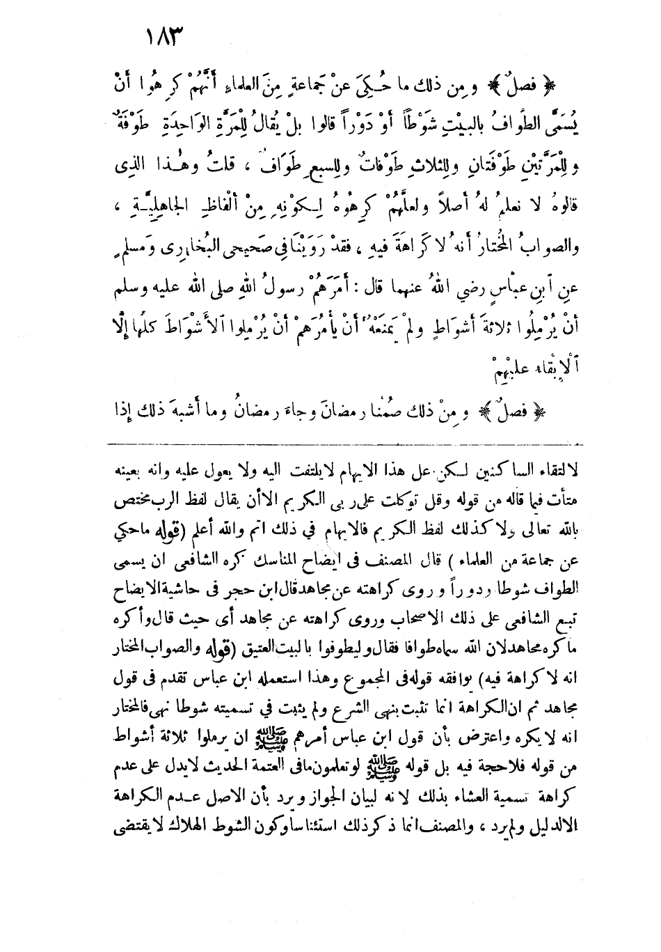 لالتقاء الساكنين لكن على هذا الإيهام لا يلتفت إليه ولا يعول عليه وأنه بعينه متأت فيما قاله من قوله وقيل توكلت على ربي الكريم إلا أن يقال لفظ الرب مختص بالله تعالى ولا كذلك لفظ الكريم فالإيهام في ذلك أتم والله أعلم. قوله: (ما حكي عن جماعة من العلماء) قال المصنف في إيضاح المناسك كره الشافعي أن يسمى الطواف شوطاً ودوراً وروي كراهته عن مجاهد قال ابن حجر في حاشية الإيضاح تبع الشافعي على ذلك الأصحاب وروى كراهته عن مجاهد أي حيث قال وأكره ما كره مجاهد لأن الله سماه طوافاً فقال {وَلْيَطَّوَّفُوا بِالْبَيْتِ الْعَتِيقِ}. قوله: (والصواب المختار أنه لا كراهة فيه) يوافقه قوله في المجموع وهذا استعمله ابن عباس تقدم في قول مجاهد ثم إن الكراهة إنما تثبت بنهي الشرع ولم يثبت في تسميته شوطاً نهي فالمختار أنه لا يكره واعترض بأن قول ابن عباس أمرهم -صلى الله عليه وسلم- أن يرملوا ثلاثة أشواط من قوله فلا حجة فيه بل قوله -صلى الله عليه وسلم- لو تعلمون ما في العتمة الحديث لا يدل على عدم كراهة تسمية العشاء بذلك لأنه لبيان الجواز ويرد بان الأصل عدم الكراهة إلا لدليل ولم يرد، والمصنف إنما ذكر ذلك استئناساً وكون الشوط الهلاك لا يقتضي