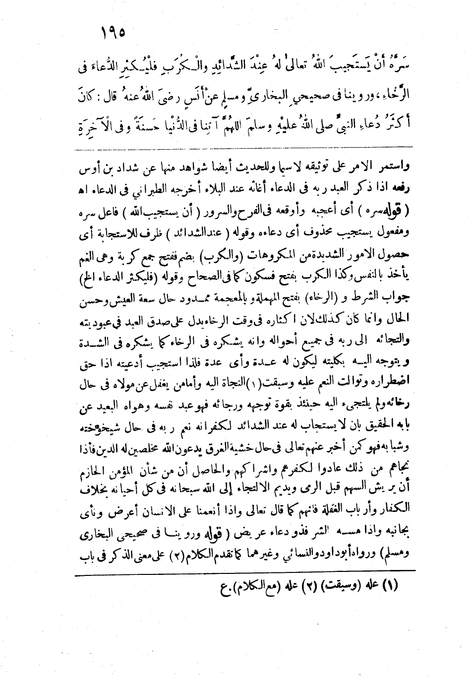 واستمر الأمر على توثيقه لا سيما وللحديث أيضاً شواهد منها عن شداد بن أوس رفعه إذا ذكر العبد ربه في الدعاء أغاثه عند البلاء أخرجه الطبراني في الدعاء اهـ. قوله: (سره) أي أعجبه وأوقعه في الفرح والسرور (أن يستجيب الله) فاعل سره ومفعول يستجيب محذوف أي دعاءه وقوله (عند الشدائد) ظرف للاستجابة أي حصول الأمور الشديدة من المكروهات (والكرب) بضم ففتح جمع كربة وهي الغم يأخذ بالنفس وكذا الكرب بفتح فسكون كما في الصحاح. وقوله: (فليكثر الدعاء الخ) جواب الشرط و (الرخاء) بفتح المهملة وبالمعجمة ممدود حال سعة العيش وحسن الحال وإنما كان كذلك لأن إكثاره في وقت الرخاء يدل على صدق العبد في عبوديته والتجائه إلى ربه في جميع أحواله وأنه يشكره في الرخاء كما يشكره في الشدة ويتوجه إليه بكليته ليكون له عدة وأي عدة فلذا استجيب أدعيته إذا حق اضطراره وتوالت النعم عليه وسبقت النجاة إليه وأما من يغفل عن مولاه في حال رخائه ولم يلتجئ إليه حينئذٍ بقوة توجهه ورجائه فهو عبد نفسه وهواه البعيد عن بابه الحقيق بأن لا يستجاب له عند الشدائد لكفرانه نعم ربه في حال شيخوخته وشبابه فهو كمن أخبر عنهم تعالى في حال خشية الغرق يدعون الله مخلصين له الدين فإذا نجاهم من ذلك عادوا لكفرهم وإشراكهم والحاصل أن من شأن المؤمن الحازم أن يريش السهم قبل الرمي ويديم الالتجاء إلى الله سبحانه في كل أحيانه بخلاف الكفار وأرباب الغفلة فإنهم كما قال تعالى: {وَإِذَا أَنْعَمْنَا عَلَى الْإِنْسَانِ أَعْرَضَ وَنَأَى بِجَانِبِهِ وَإِذَا مَسَّهُ الشَّرُّ} فذو دعاء عريض.