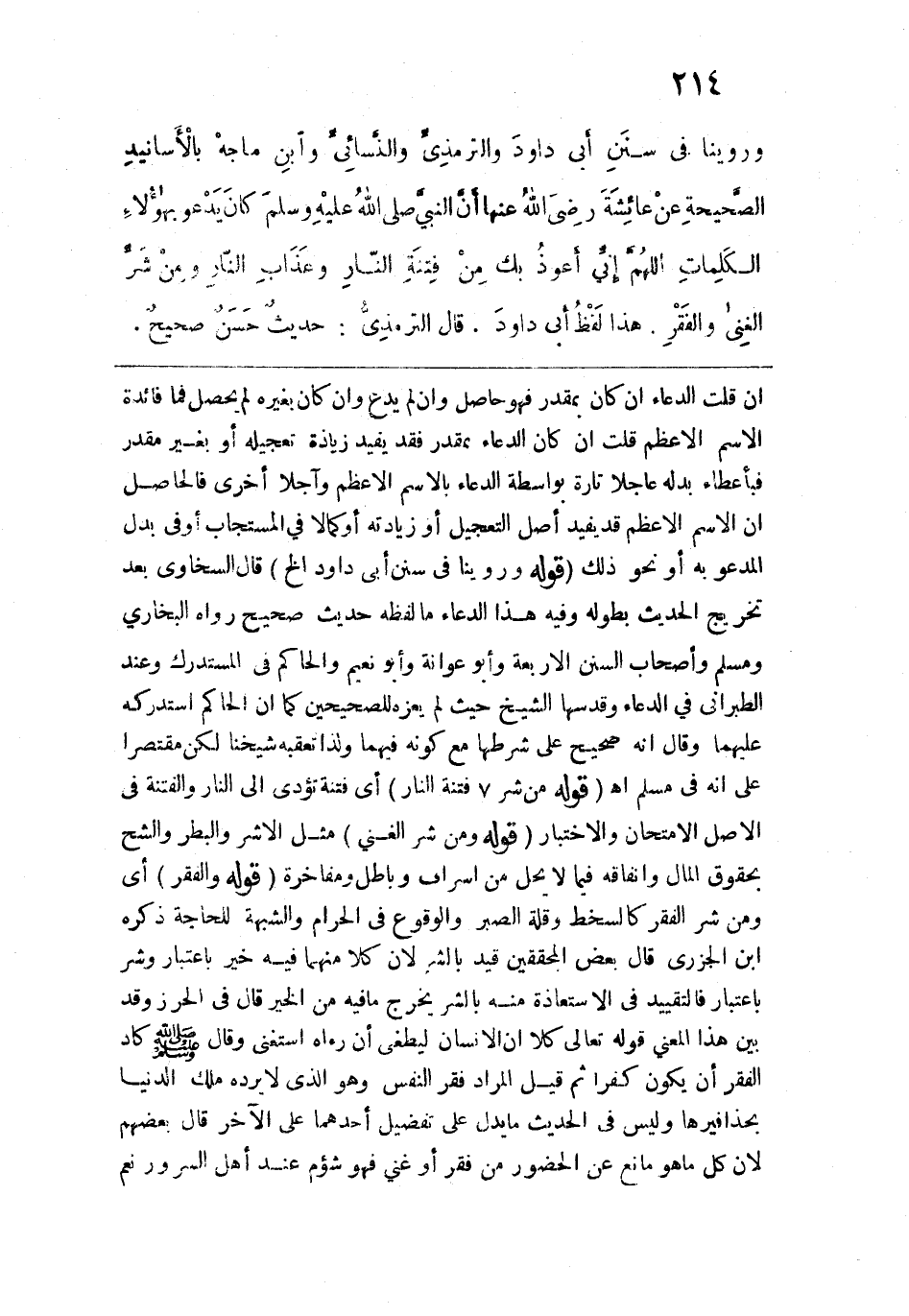 وروينا في سنن أبي داود والترمذي والنسائي وابن ماجه بالأسانيد الصحيحة عن عائشة رضي الله عنها، أن النبي -صلى الله عليه وسلم- كان يدعو بهؤلاء الكلمات: "اللهم إني أعُوذُ بِكَ مِن فِتْنَةِ النَّارِ، وعَذابِ النَّارِ، ومِنْ شَرّ الغِنى والفَقْرِ" هذا لفظ أبي داود، قال الترمذي: حديث حسن صحيح.