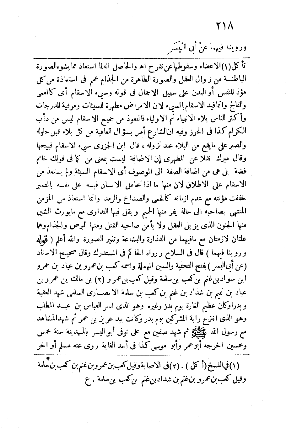 قوله: (وروينا فيهما) قال في السلاح ورواه الحاكم في المستدرك وقال صحيح الإسناد (عن أبي اليسر) بفتح التحتية والسين المهملة واسمه كعب بن عمرو بن عباد بن عمرو بن سواد بن غنم بن