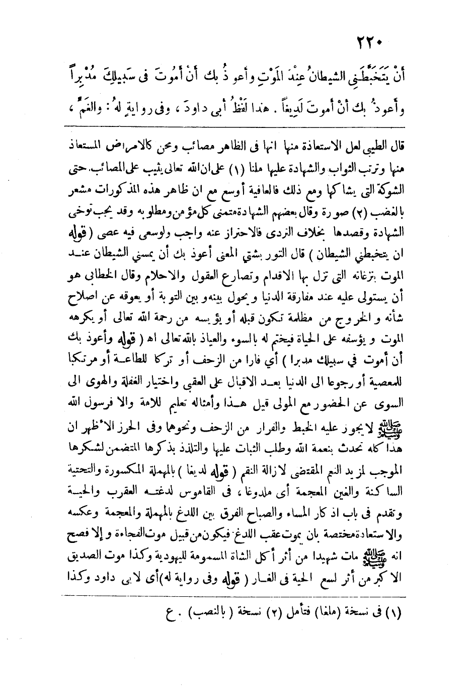 أن يَتَخَبَّطَنِي الشيطانُ عِنْدَ الَمَوْتِ، وأعُوذُ بكَ أنْ أمُوتَ في سَبيلِكَ مُدْبراً، وأعُوَذُ بكَ أن أَمُوتَ لَدِيغاً" هذا لفظ أبي داود، وفي رواية له "والغَمّ".