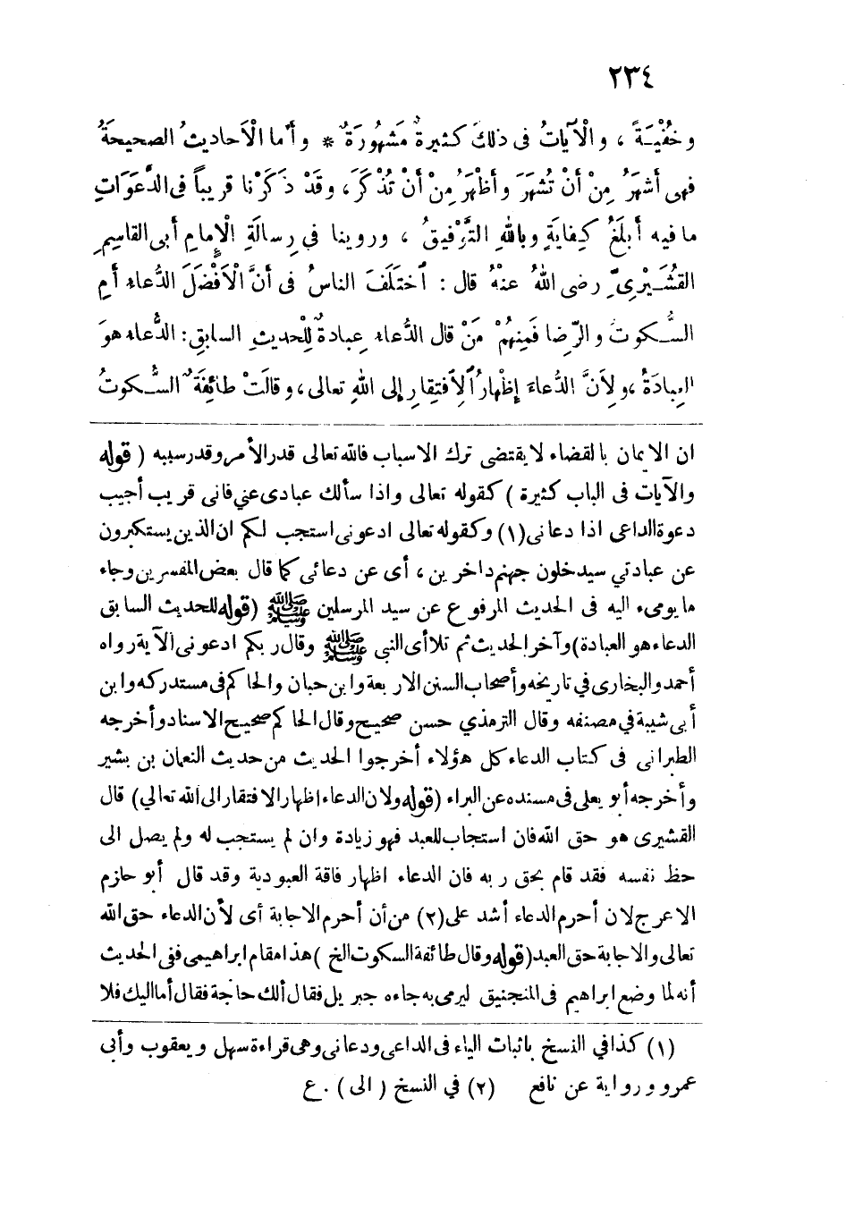 وروينا في "رسالة الإِمام أبي القاسم القشيري" رضي الله عنه قال: اختلف النّاس في أن الأفضل الدعاء، أم السكوت والرضى؟ فمنهم من قال: الدعاء عبادة، للحديث السابق: "الدُّعاءُ هُو العِبَادَةُ" ولأن الدعاء إظهار الافتقار إلى الله تعالى. وقالت طائفة: السكوت