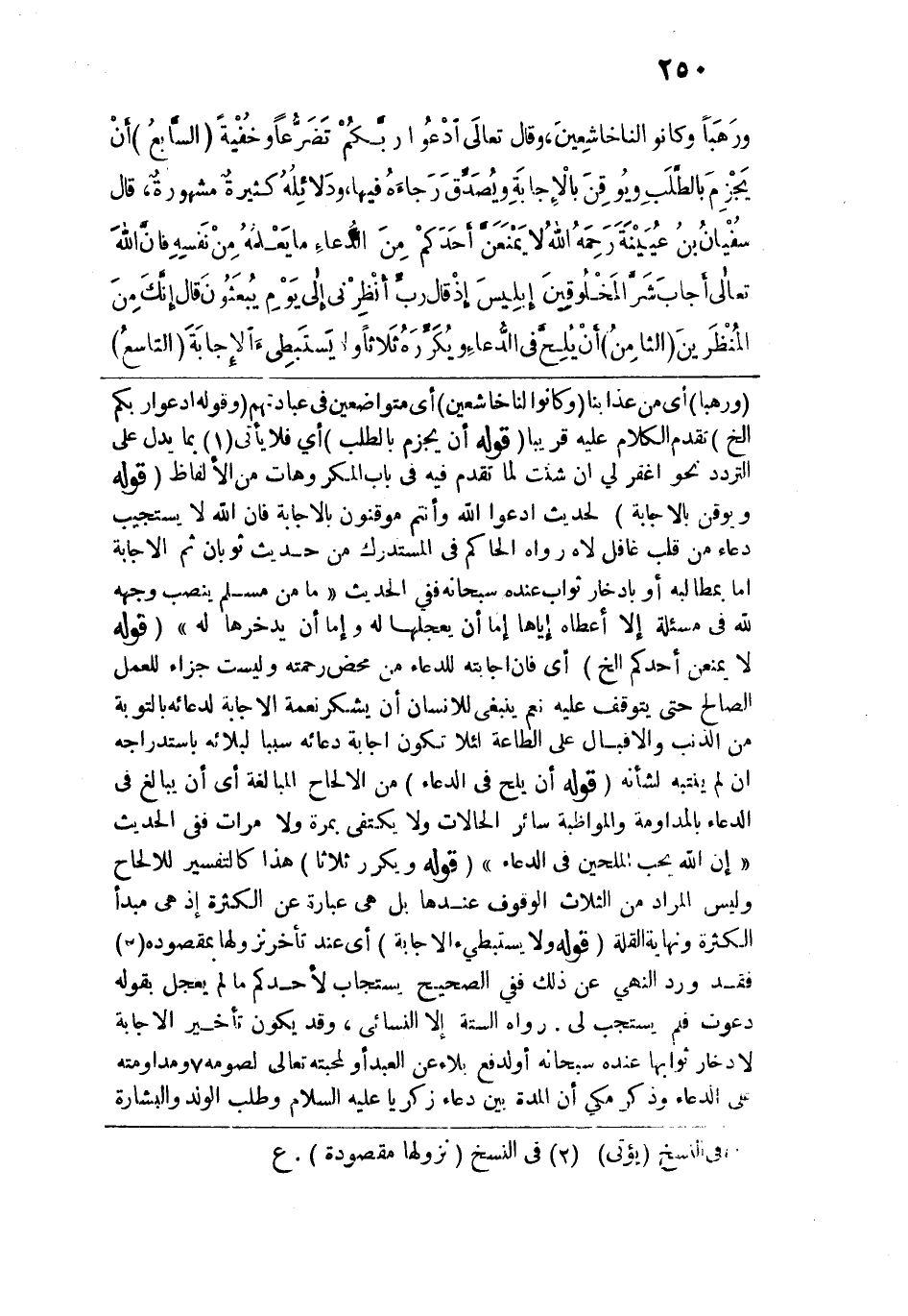 (ورهباً) أي من عذابنا (وكانوا لنا خاشعين) أي متواضعين في عبادتهم. وقوله: (ادعوا ربكم الخ) تقدم الكلام عليه قريباً. قوله: (أن يجزم بالطلب) أي فلا يأتي بما يدل على التردد نحو اغفر لي إن شئت لما تقدم فيه في باب المكروهات من الألفاظ. قوله: (ويوقن