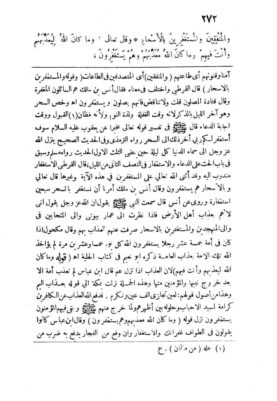 وَالْمُنْفِقِينَ وَالْمُسْتَغْفِرِينَ بِالْأَسْحَارِ} [آل عمران: 15 - 17] {وَمَا كَانَ اللَّهُ لِيُعَذِّبَهُمْ وَأَنْتَ فِيهِمْ وَمَا كَانَ اللَّهُ مُعَذِّبَهُمْ وَهُمْ يَسْتَغْفِرُونَ} [الأنفال: 33]