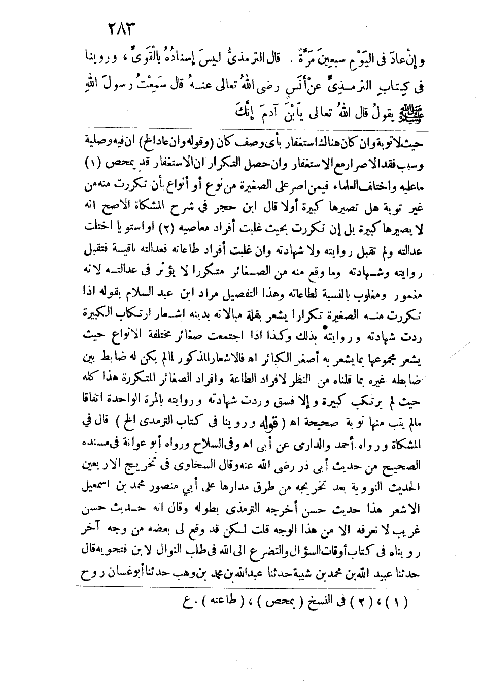 وروينا في كتاب الترمذي عن أنس رضي الله تعالى عنه قال: سمعت رسول الله -صلى الله عليه وسلم- يقول: "قالَ اللهُ تَعالى: يا ابْنَ آدَمَ، إنَّكَ