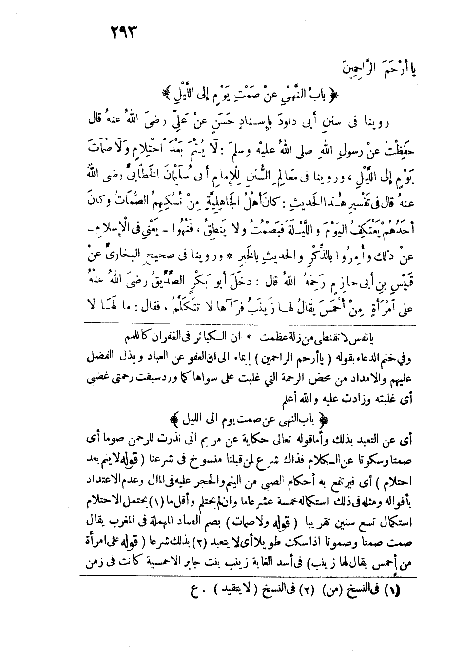 روينا في سنن أبي داود بإسناد حسن عن عليٍّ رضي الله عنه قال: حفظت عن رسول الله -صلى الله عليه وسلم-: "لا يُتْمَ بعدَ احْتِلامٍ ولا صُماتَ يَوْمٍ إلى اللَّيلِ".