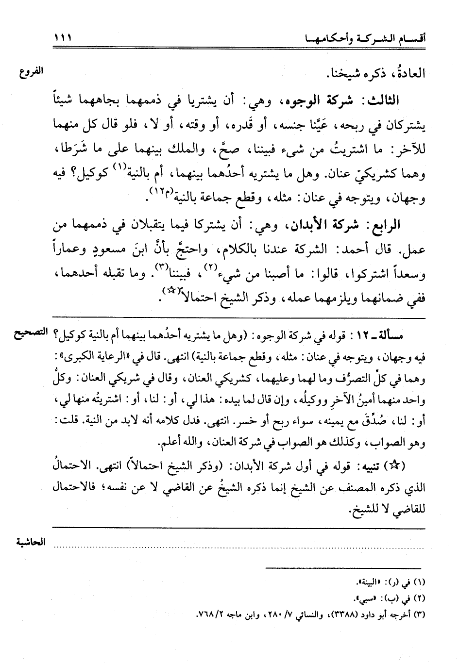 الثَّالِثُ شَرِكَةُ الْوُجُوهِ: