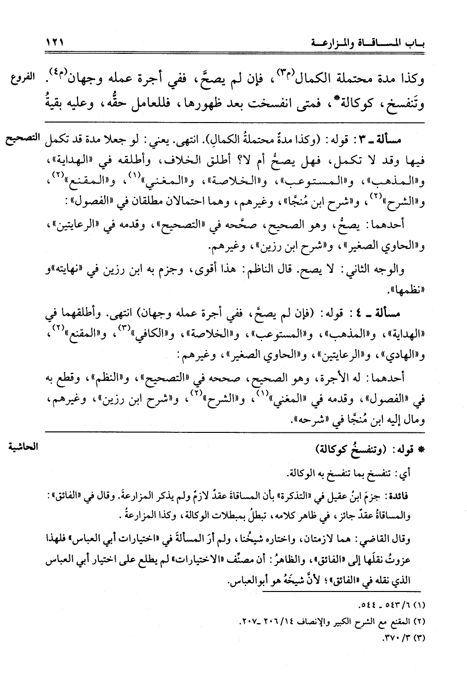 ـــــــــــــــــــــــــــــQمَسْأَلَةٌ-3: قَوْلُهُ: "وَكَذَا مُدَّةٌ مُحْتَمِلَةٌ الْكَمَالَ" انْتَهَى، يعني لو جعلا مدة قد تَكْمُلُ فِيهَا وَقَدْ لَا تَكْمُلُ فَهَلْ يَصِحُّ أَمْ لَا؟ أَطْلَقَ الْخِلَافَ، وَأَطْلَقَهُ فِي الْهِدَايَةِ وَالْمُذْهَبِ وَالْمُسْتَوْعِبِ وَالْخُلَاصَةِ وَالْمُغْنِي1 وَالْمُقْنِعِ2 وَالشَّرْحِ2 وَشَرْحِ ابن منجا وَغَيْرِهِمْ، وَهُمَا احْتِمَالَانِ مُطْلَقَانِ فِي الْفُصُولِ: