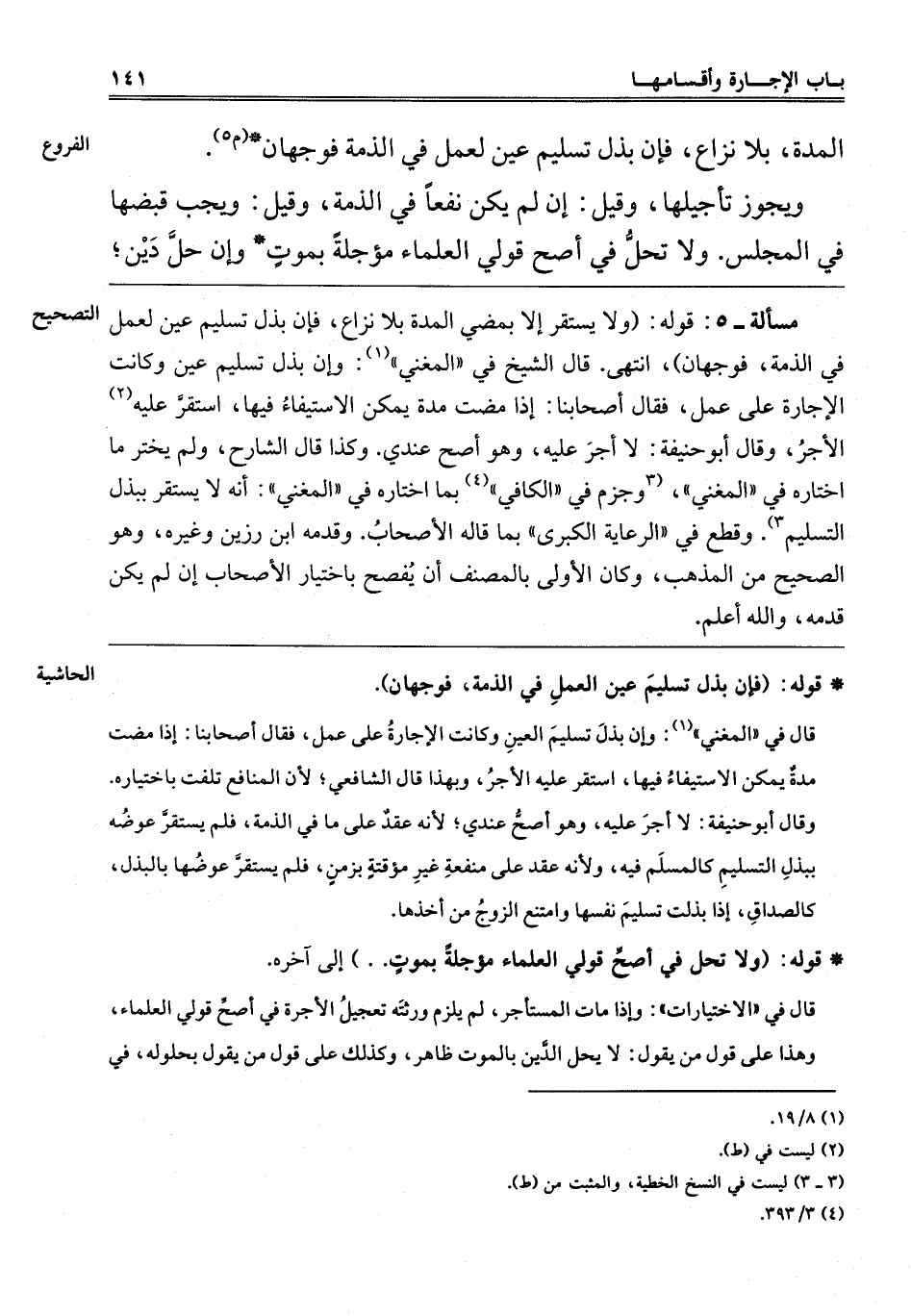 ـــــــــــــــــــــــــــــQمَسْأَلَةٌ-5: قَوْلُهُ: "وَلَا يَسْتَقِرُّ إلَّا بِمُضِيِّ الْمُدَّةِ بِلَا نِزَاعٍ، فَإِنْ بَذَلَ تَسْلِيمَ عَيْنٍ لِعَمَلٍ فِي الذِّمَّةِ فَوَجْهَانِ" انْتَهَى، قَالَ الشَّيْخُ فِي الْمُغْنِي1. وَإِنْ بَذَلَ تَسْلِيمَ عَيْنٍ وَكَانَتْ الْإِجَارَةُ عَلَى عَمَلٍ فَقَالَ أَصْحَابُنَا إذَا مَضَتْ مُدَّةٌ يُمْكِنُ الِاسْتِيفَاءُ فِيهَا اسْتَقَرَّ عَلَيْهِ2 الْأَجْرُ وَقَالَ أَبُو حَنِيفَةَ: لَا أَجْرَ عَلَيْهِ، وَهُوَ أَصَحُّ عِنْدِي" انْتَهَى، وَكَذَا قَالَ الشَّارِحُ، وَلَمْ يَخْتَرْ مَا اخْتَارَهُ فِي الْمُغْنِي، "3وَجَزَمَ فِي الْكَافِي4 بِمَا اخْتَارَهُ فِي الْمُغْنِي أَنَّهُ لَا يَسْتَقِرُّ بِبَذْلِ التَّسْلِيمِ3"، وَقَطَعَ فِي الرِّعَايَةِ الْكُبْرَى بِمَا قَالَهُ الْأَصْحَابُ، وَقَدَّمَهُ ابْنُ رَزِينٍ وَغَيْرُهُ، وَهُوَ الصَّحِيحُ مِنْ الْمَذْهَبِ، وَكَانَ الْأَوْلَى بِالْمُصَنِّفِ أَنْ يُفْصِحَ بِاخْتِيَارِ الْأَصْحَابِ إنْ لَمْ يُقَدِّمْهُ، وَاَللَّهُ أعلم.