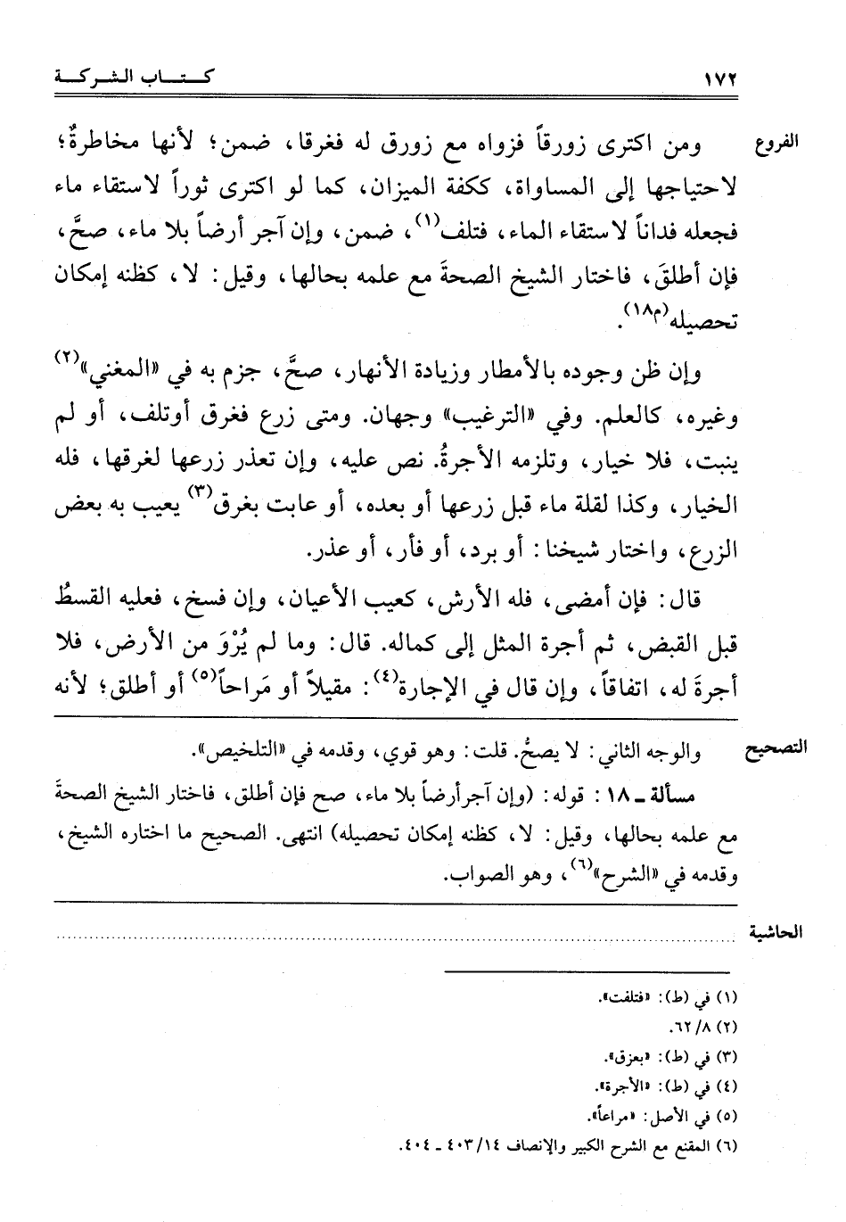 مَسْأَلَةٌ-18: قَوْلُهُ: "وَإِنْ آجَرَ أَرْضًا بِلَا مَاءٍ صَحَّ فَإِنْ أَطْلَقَ فَاخْتَارَ الشَّيْخُ الصِّحَّةَ مَعَ عِلْمِهِ بِحَالِهَا، وَقِيلَ: لَا، كَظَنِّهِ إمْكَانَ تَحْصِيلِهِ" انْتَهَى. الصَّحِيحُ مَا اخْتَارَهُ الشَّيْخُ وَقَدَّمَهُ فِي الشرح6، وهو الصواب.