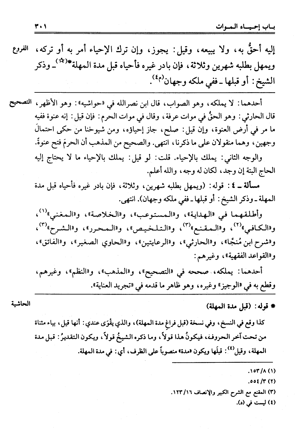 مَسْأَلَةٌ-4: قَوْلُهُ: "وَيُمْهَلُ بِطَلَبِهِ شَهْرَيْنِ وَثَلَاثَةً، فَإِنْ بَادَرَ غَيْرُهُ فَأَحْيَاهُ قَبْلَ مُدَّةِ الْمُهْلَةِ وَذَكَرَ الشَّيْخُ: أَوْ قَبْلَهَا فَفِي مِلْكِهِ وَجْهَانِ" انْتَهَى.