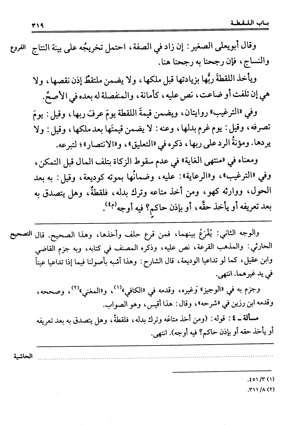 وَمَعْنَاهُ فِي مُنْتَهَى الْغَايَةِ فِي عَدَمِ سُقُوطِ الزَّكَاةِ بِتَلَفِ الْمَالِ قَبْلَ التَّمَكُّنِ. وَفِي التَّرْغِيبِ وَالرِّعَايَةِ: عَلَيْهِ، وَضَمَانُهَا بِمَوْتِهِ كَوَدِيعَةٍ، وَقِيلَ بِهِ بَعْدَ الْحَوْلِ، وَوَارِثُهُ كهو، ومن أخذ متاعه وترك بدله فلقطة، وهل يَتَصَدَّقُ بِهِ بَعْدَ تَعْرِيفِهِ أَوْ يَأْخُذُ حَقَّهُ أو بإذن حاكم؟ فيه أوجه "م 4".