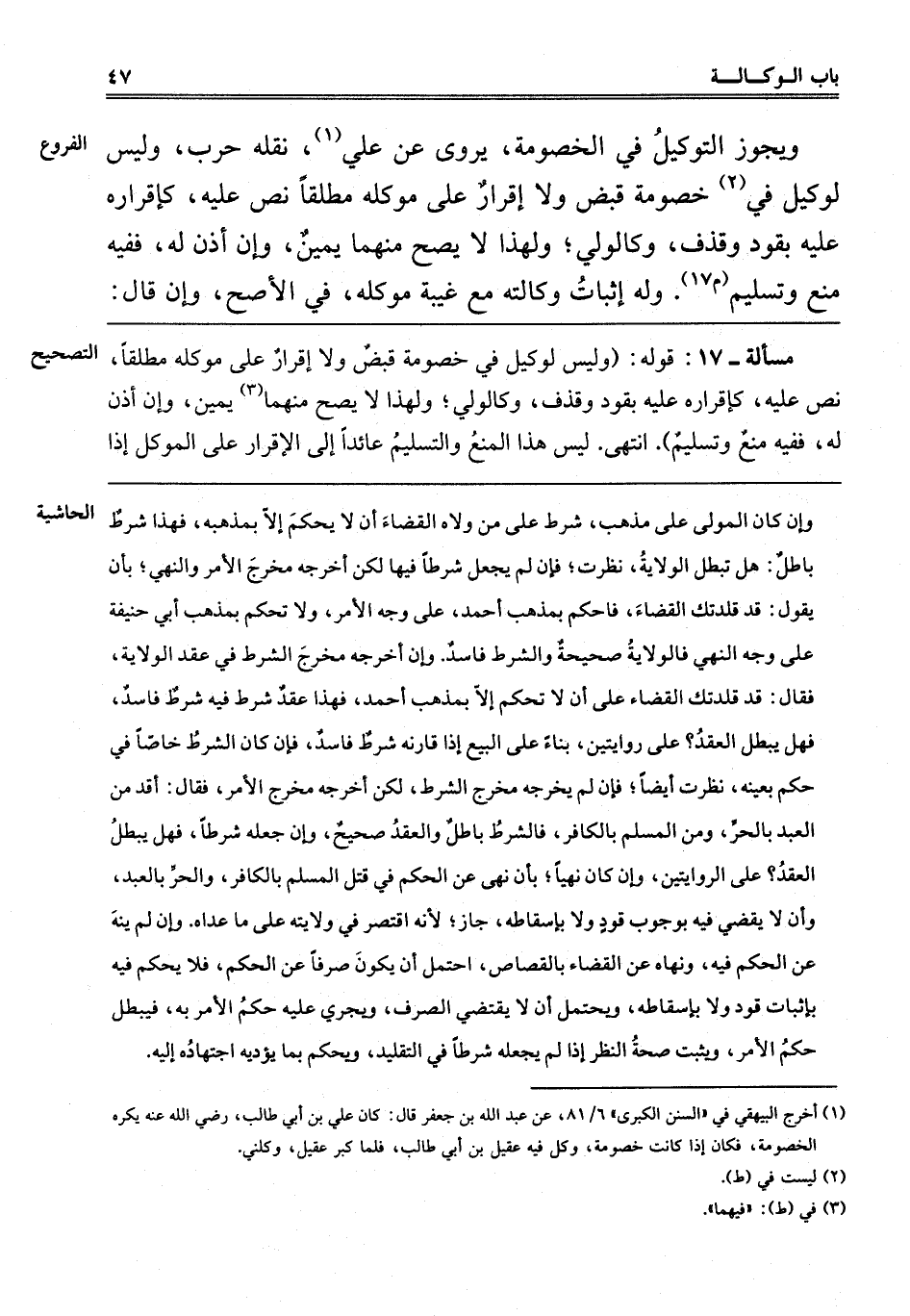1 أخرجه البيهقي في "السنن الكبرى" 6/81، عن عبد الله بن جعفر قال: كان عَلِيُّ بْنُ أَبِي طَالِبٍ، رَضِيَ اللَّهُ عَنْهُ يكره الخصومة، فكان إذا كانت خصومة، وكل فيه عقيل بن أبي طالب، فلما كبر عقيل، وكلني.