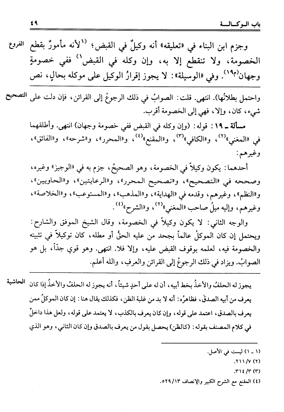 مَسْأَلَةٌ-19: قَوْلُهُ: "وَإِنْ وَكَّلَهُ فِي الْقَبْضِ فَفِي خُصُومَةٍ وَجْهَانِ" انْتَهَى. وَأَطْلَقَهُمَا فِي الْمُغْنِي2 وَالْكَافِي3 وَالْمُقْنِعِ4 وَالْمُحَرَّرِ وَشَرْحِهِ وَالْفَائِقِ وَغَيْرِهِمْ: