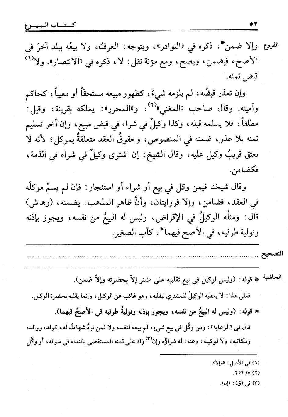 وَقَالَ شَيْخُنَا فِيمَنْ وُكِّلَ فِي بَيْعٍ أَوْ شِرَاءٍ أَوْ اسْتِئْجَارٍ، فَإِنْ لَمْ يُسَمِّ مُوَكِّلَهُ فِي الْعَقْدِ فَضَامِنٌ، وَإِلَّا فَرِوَايَتَانِ، وَأَنَّ ظَاهِرَ الْمَذْهَبِ يُضَمِّنُهُ، "وَهـ ش" قَالَ: وَمِثْلُهُ الْوَكِيلُ فِي الْإِقْرَاضِ، وَلَيْسَ لَهُ الْبَيْعُ مِنْ نَفْسِهِ، وَيَجُوزُ بِإِذْنِهِ وَتَوْلِيَةُ طَرَفَيْهِ، فِي الْأَصَحِّ فِيهِمَا، كَأَبِ الصغير.