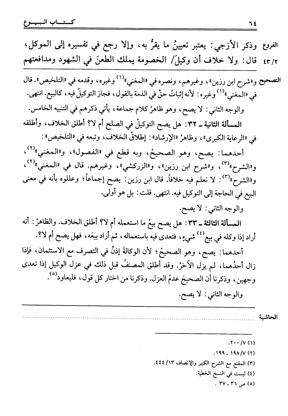 الْمَسْأَلَةُ الثَّانِيَةُ-32: هَلْ يَصِحُّ التَّوْكِيلُ فِي الصُّلْحِ أَمْ لَا؟ أُطْلِقَ الْخِلَافُ، وَأَطْلَقَهُ فِي الرِّعَايَةِ الْكُبْرَى، وَظَاهِرُ الْإِرْشَادِ إطْلَاقُ الْخِلَافِ، وَتَبِعَهُ فِي التَّلْخِيصِ.